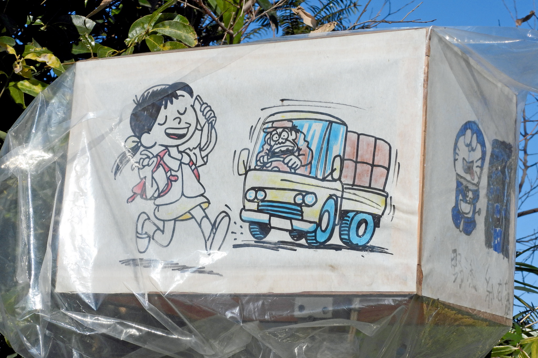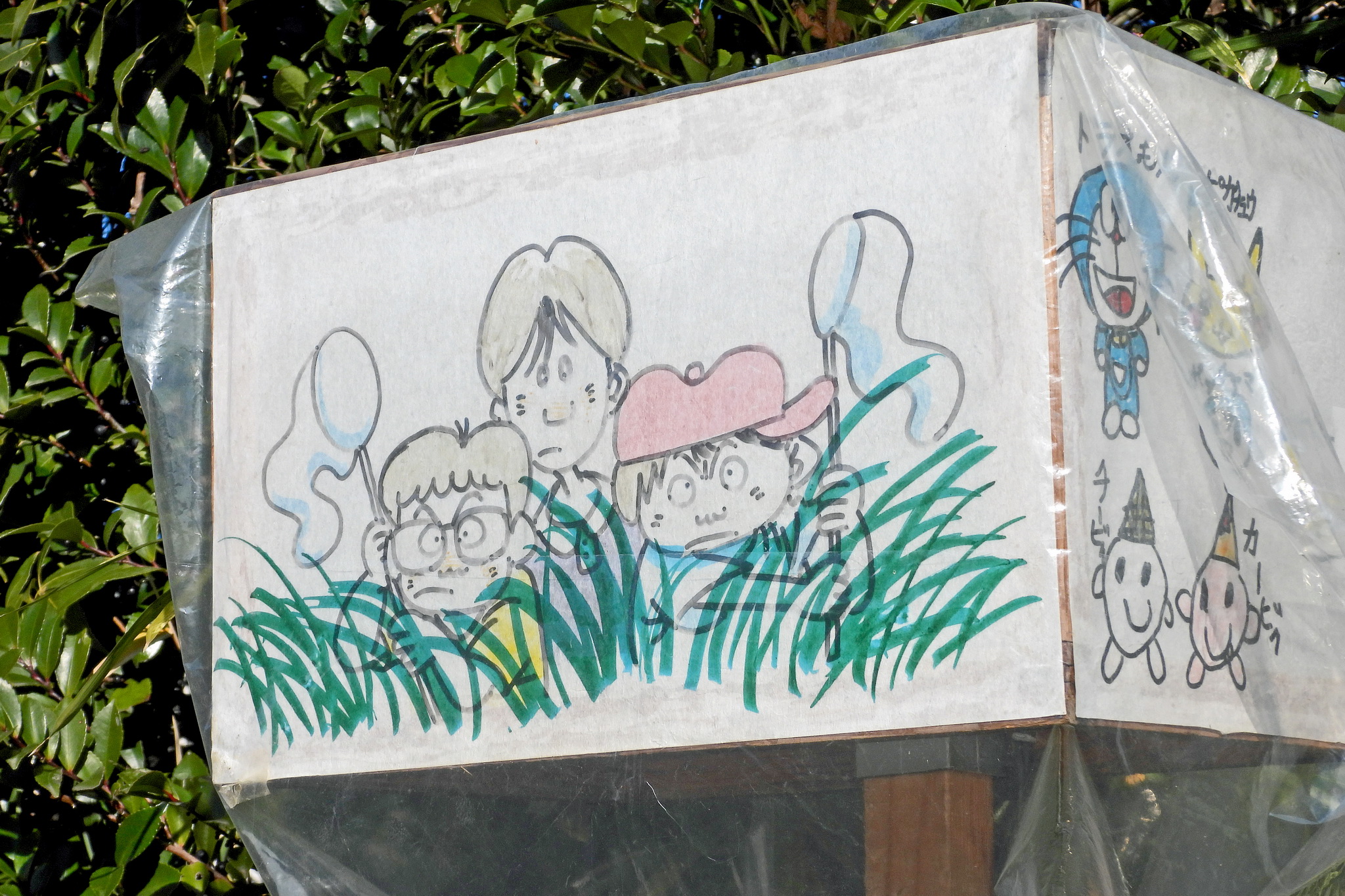 傘の部分は木枠に紙を張り付けたもので、紙に絵が描いてあります。