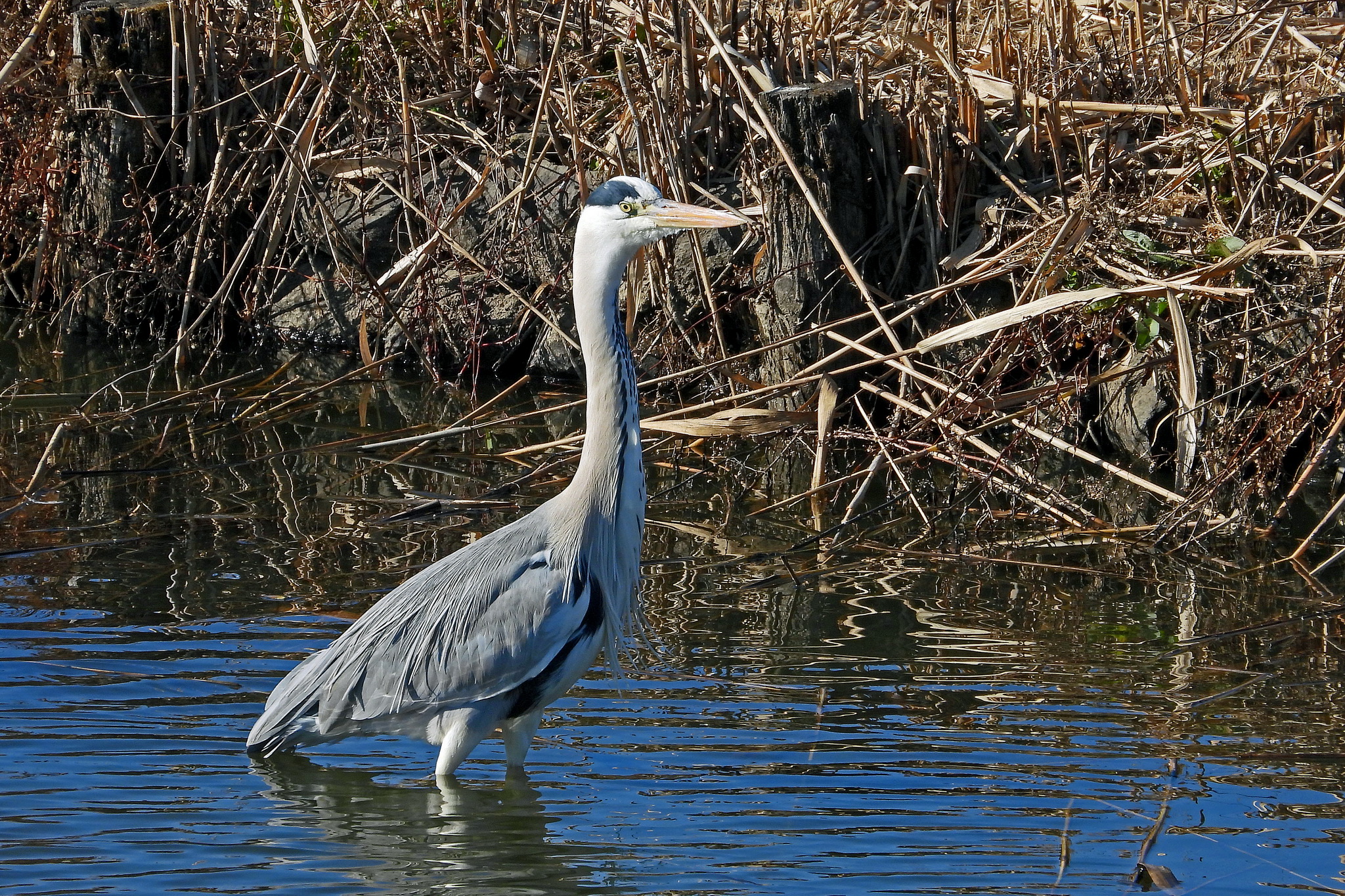 昨日「ダイサギ」が居たところに、今日は「アオサギ」です。