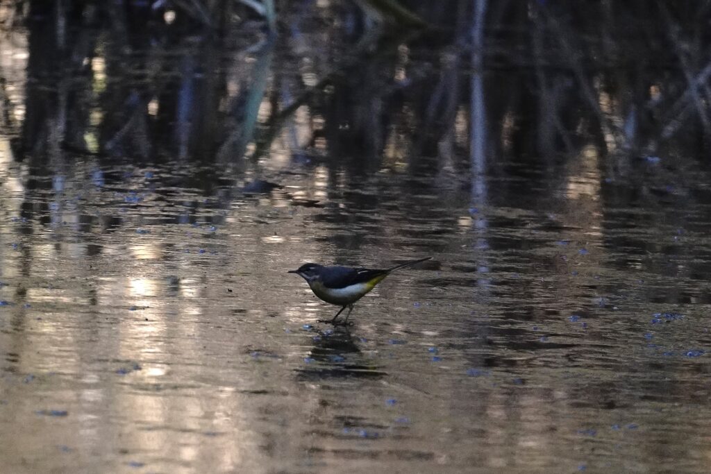 暗くて分かりずらいのですが、お尻のあたりが黄色いのでキセキレイだと思います。