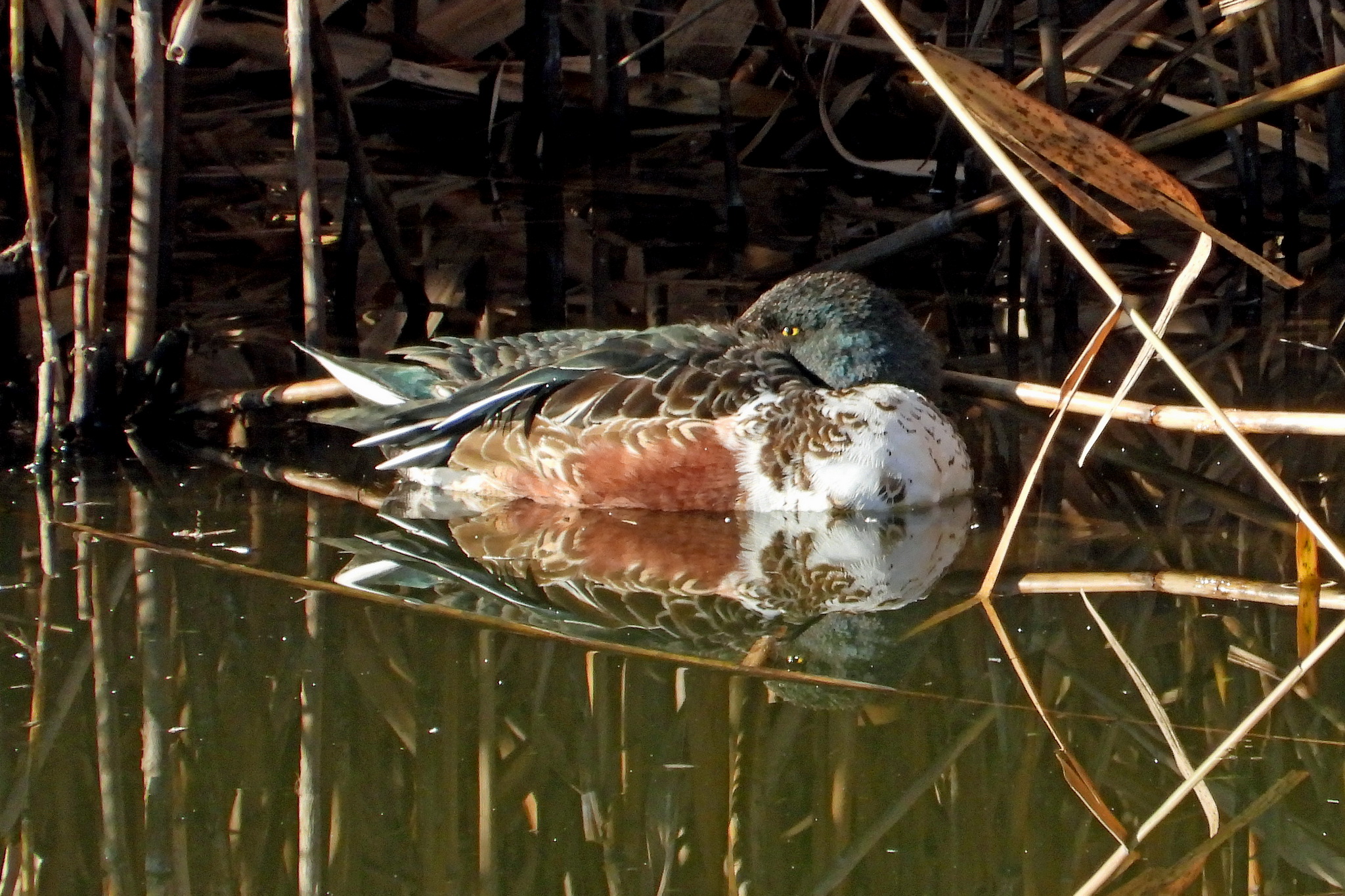 「ヨシガモ」のオスに「ハシビロガモ」のオスです。