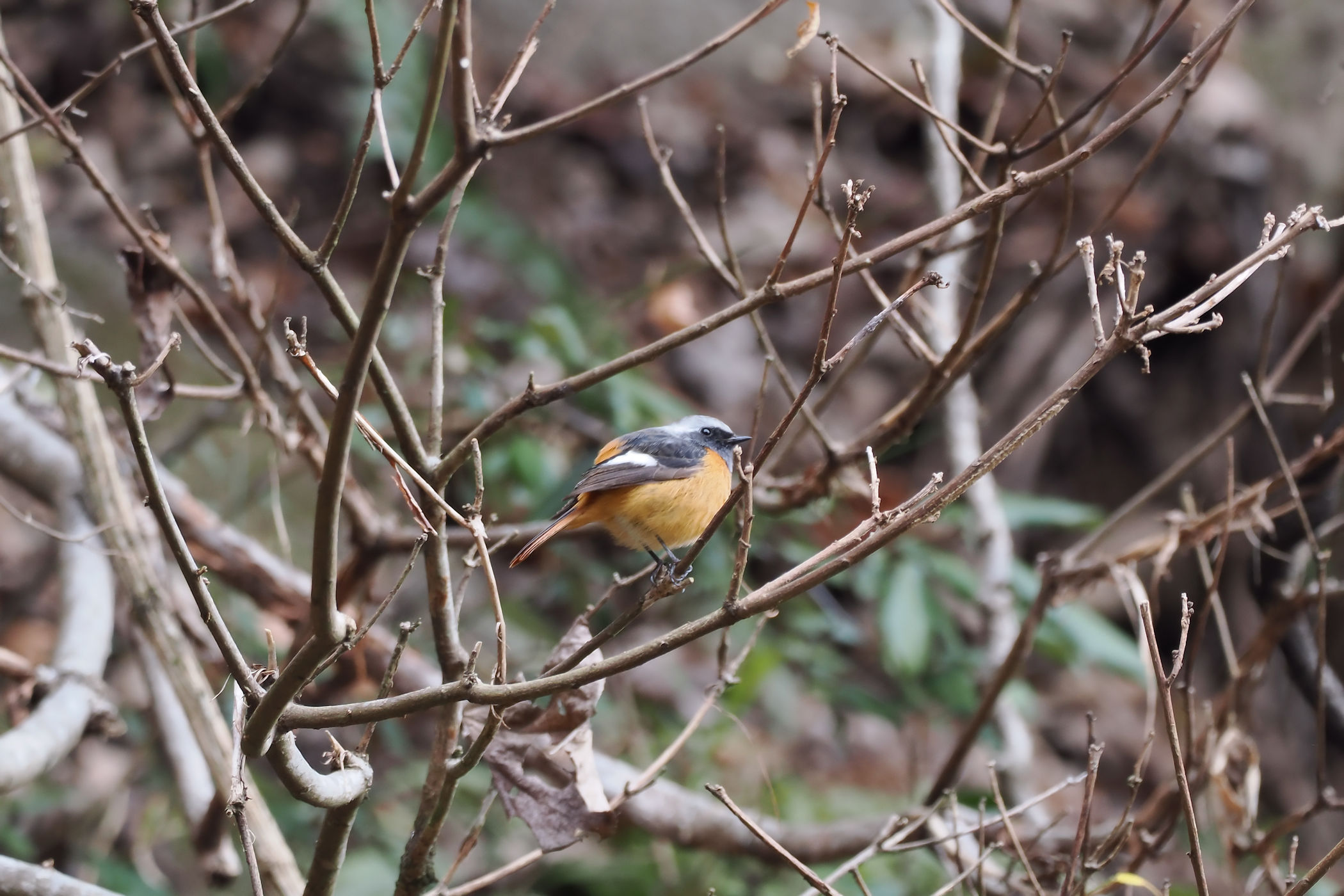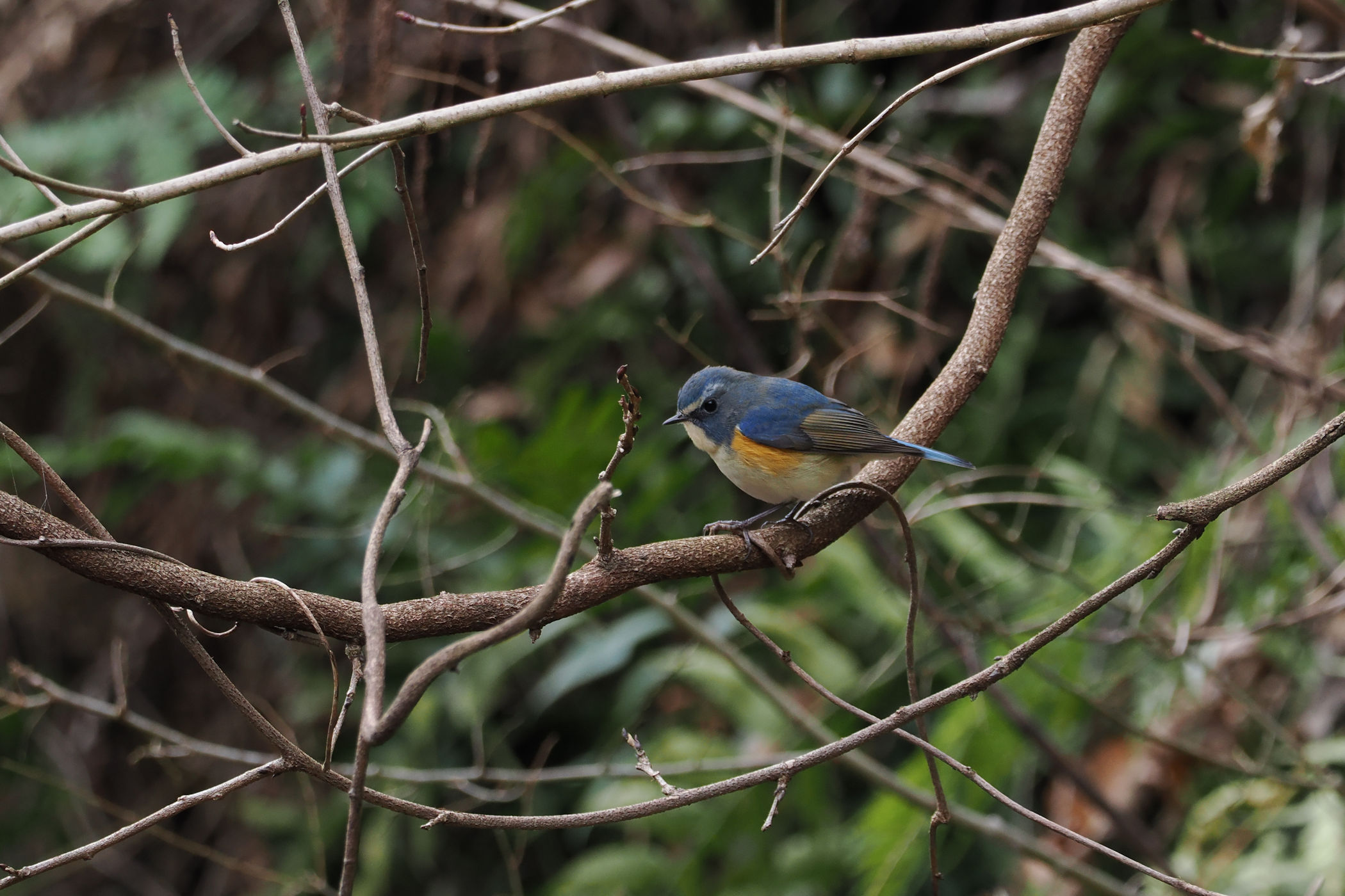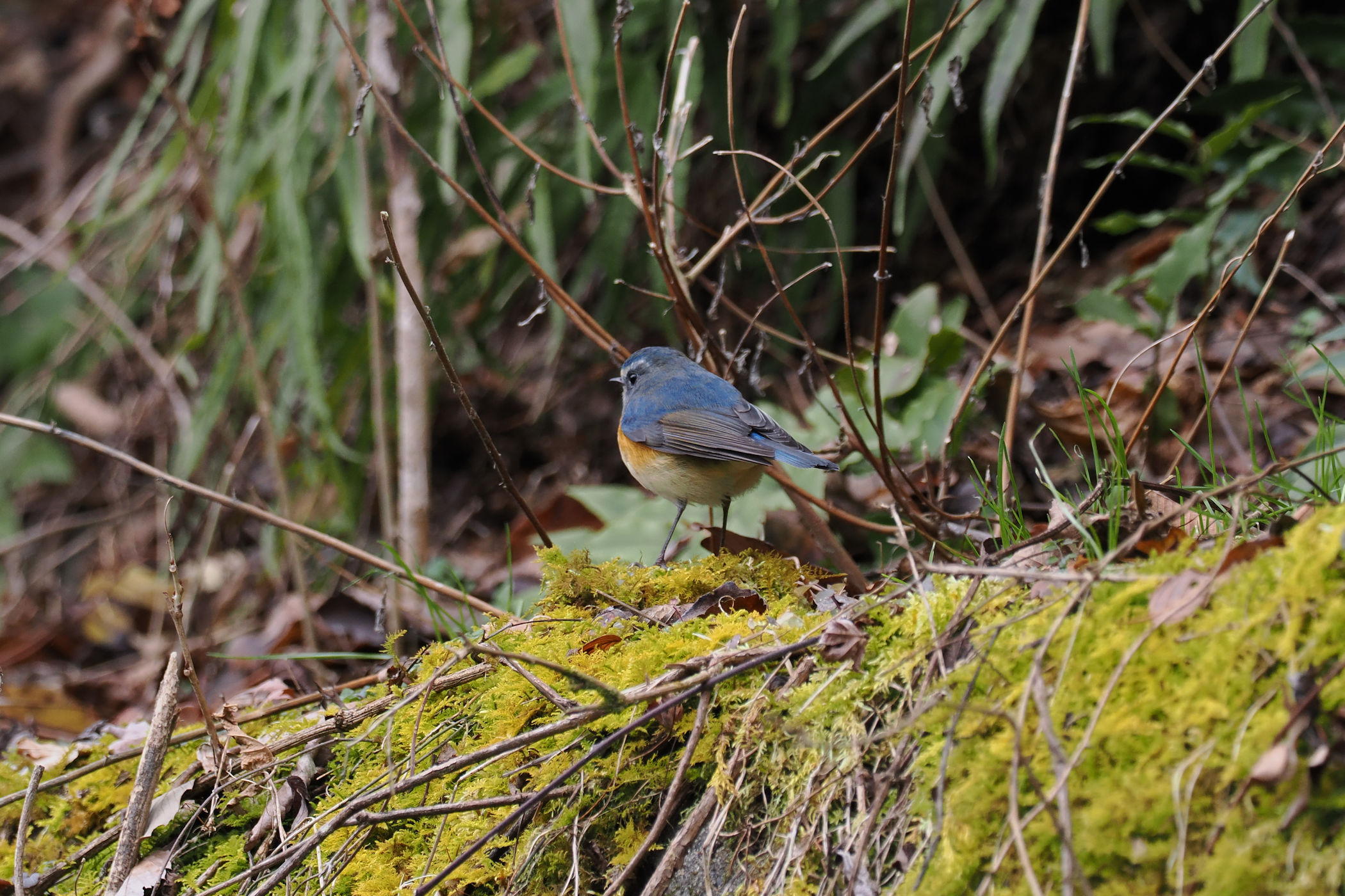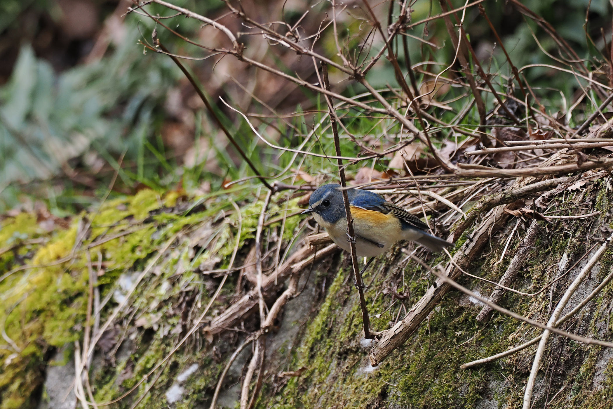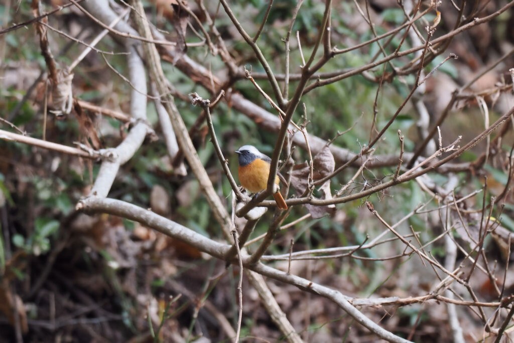 前方の枝にルリビタキの坊ちゃんが