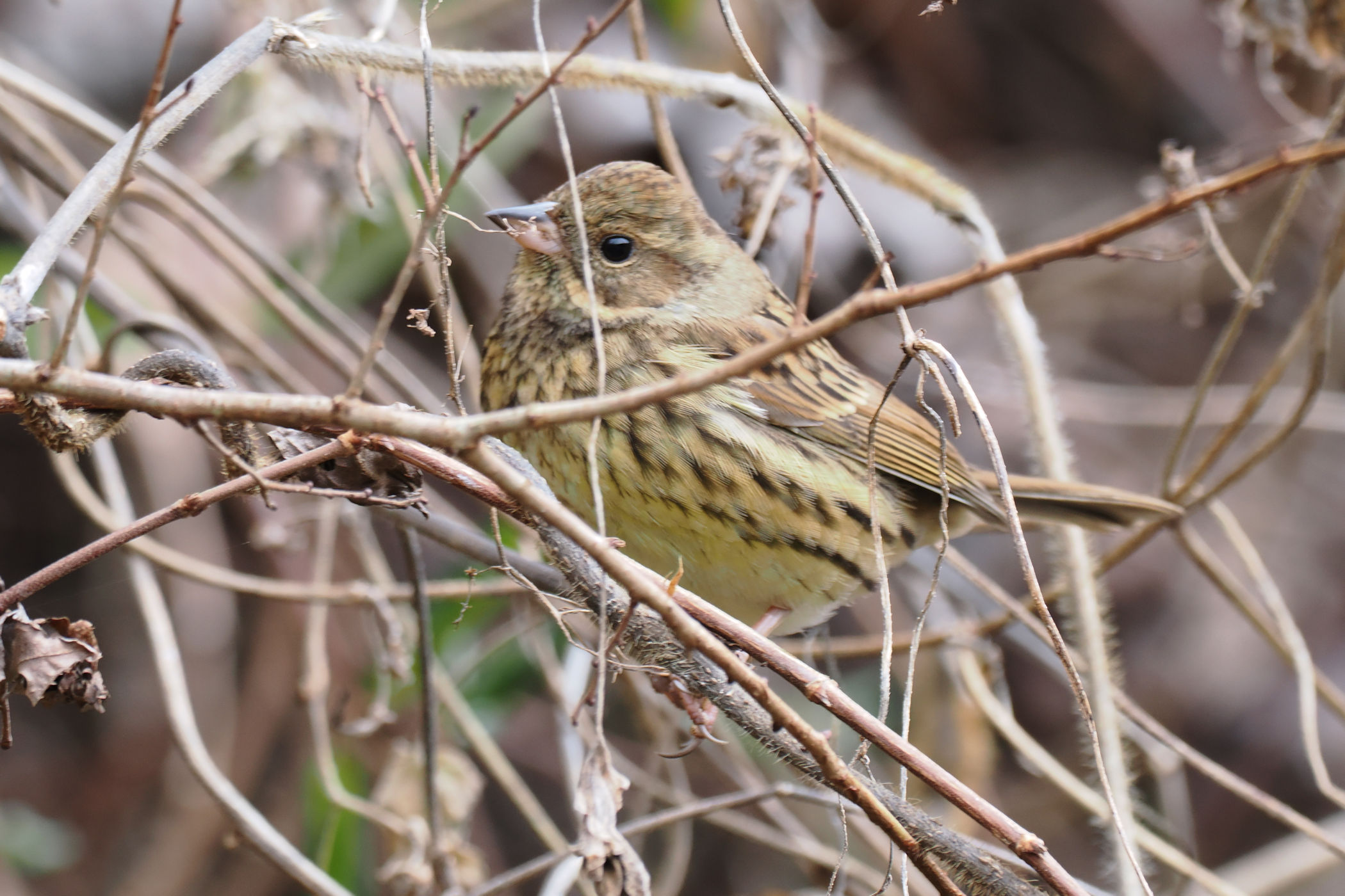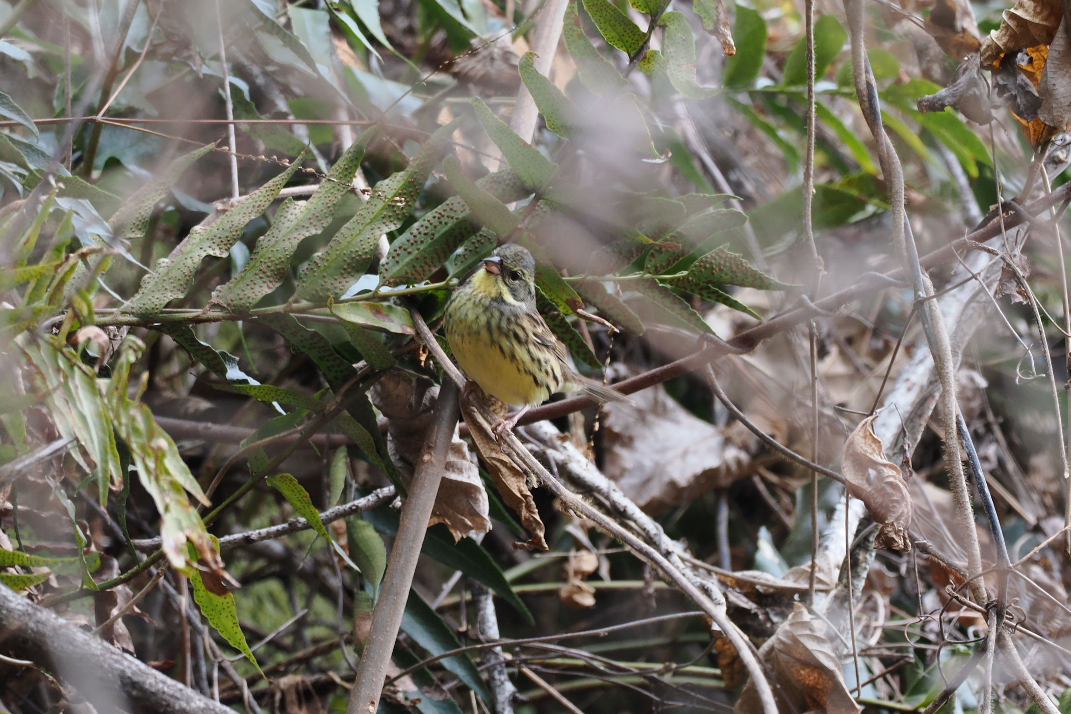 藪の中からアオジさんがヒョッコリ