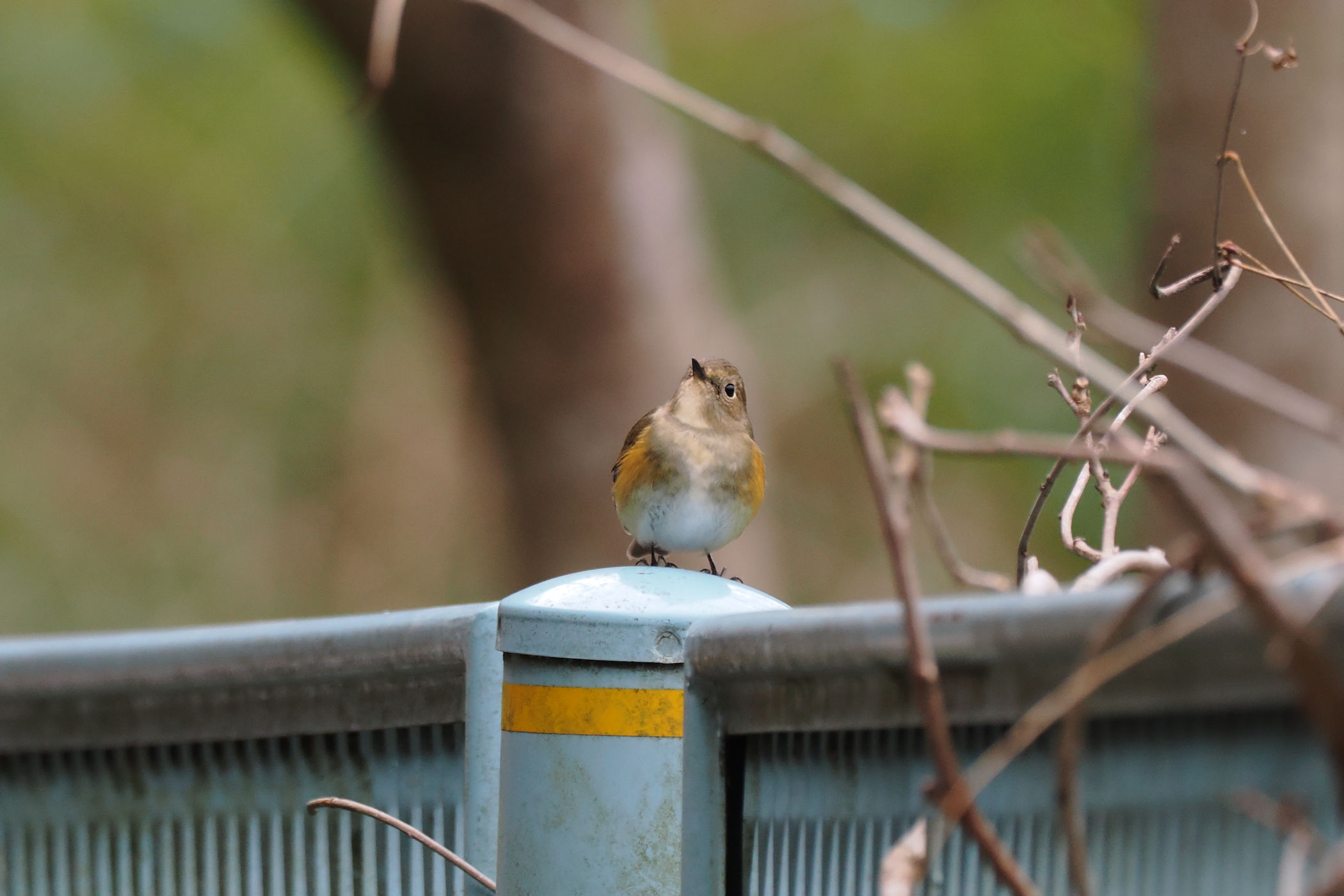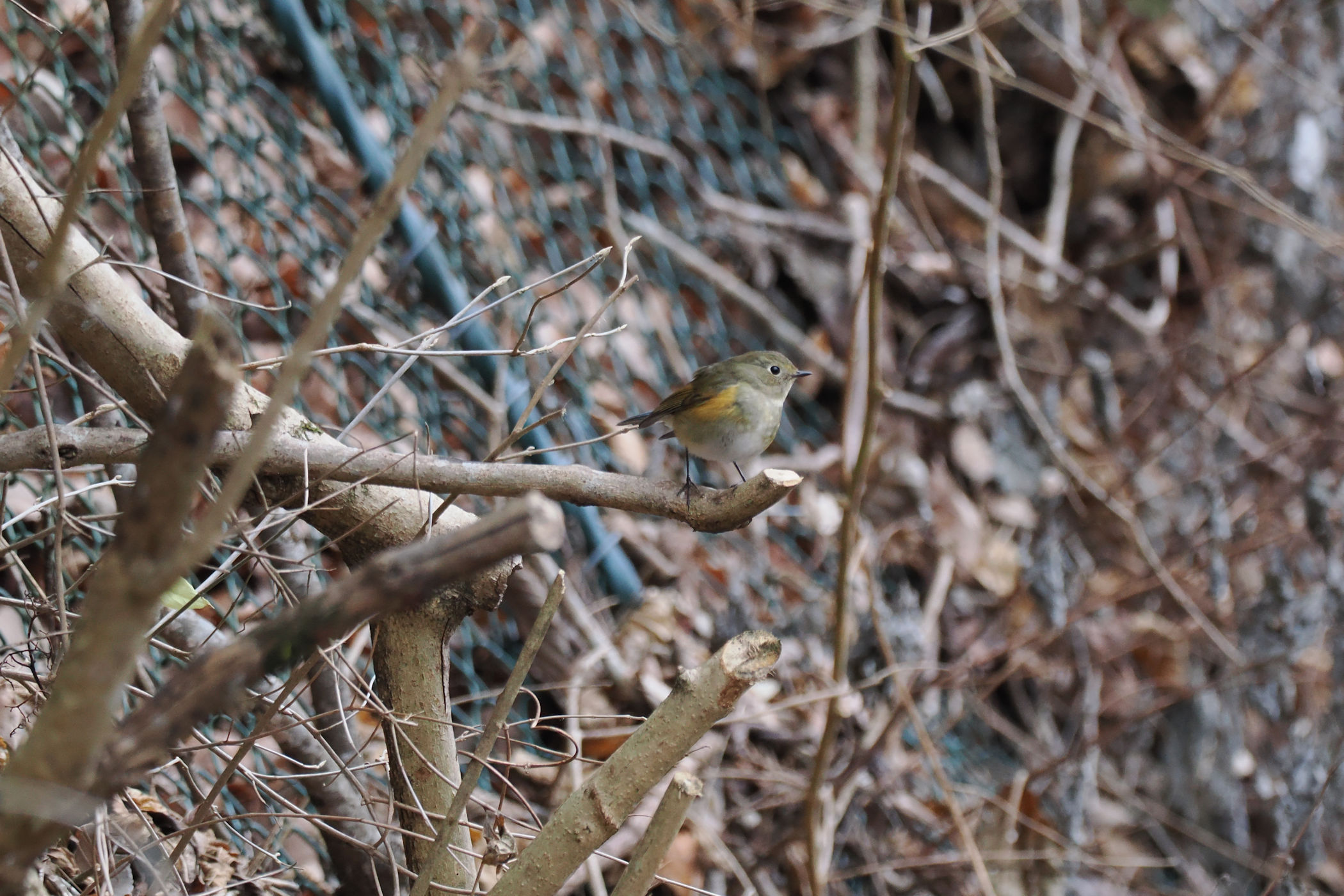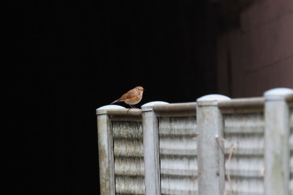 奥のフェンスにニシオジロビタキさん