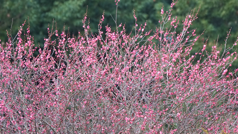 植栽ですが、看護学部敷地内の紅梅が花盛りでした。