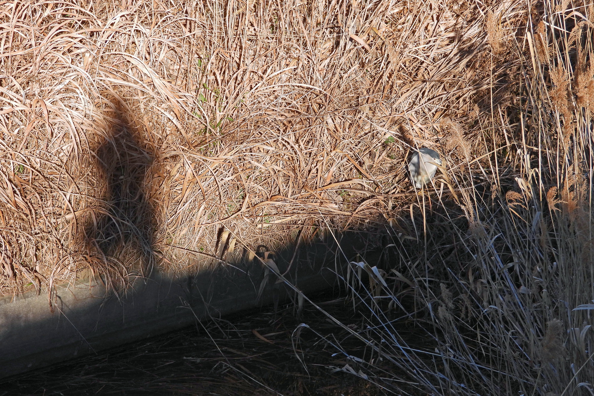右端に「ゴイサギ」が居て、左に撮っている私の影が写ってますね。