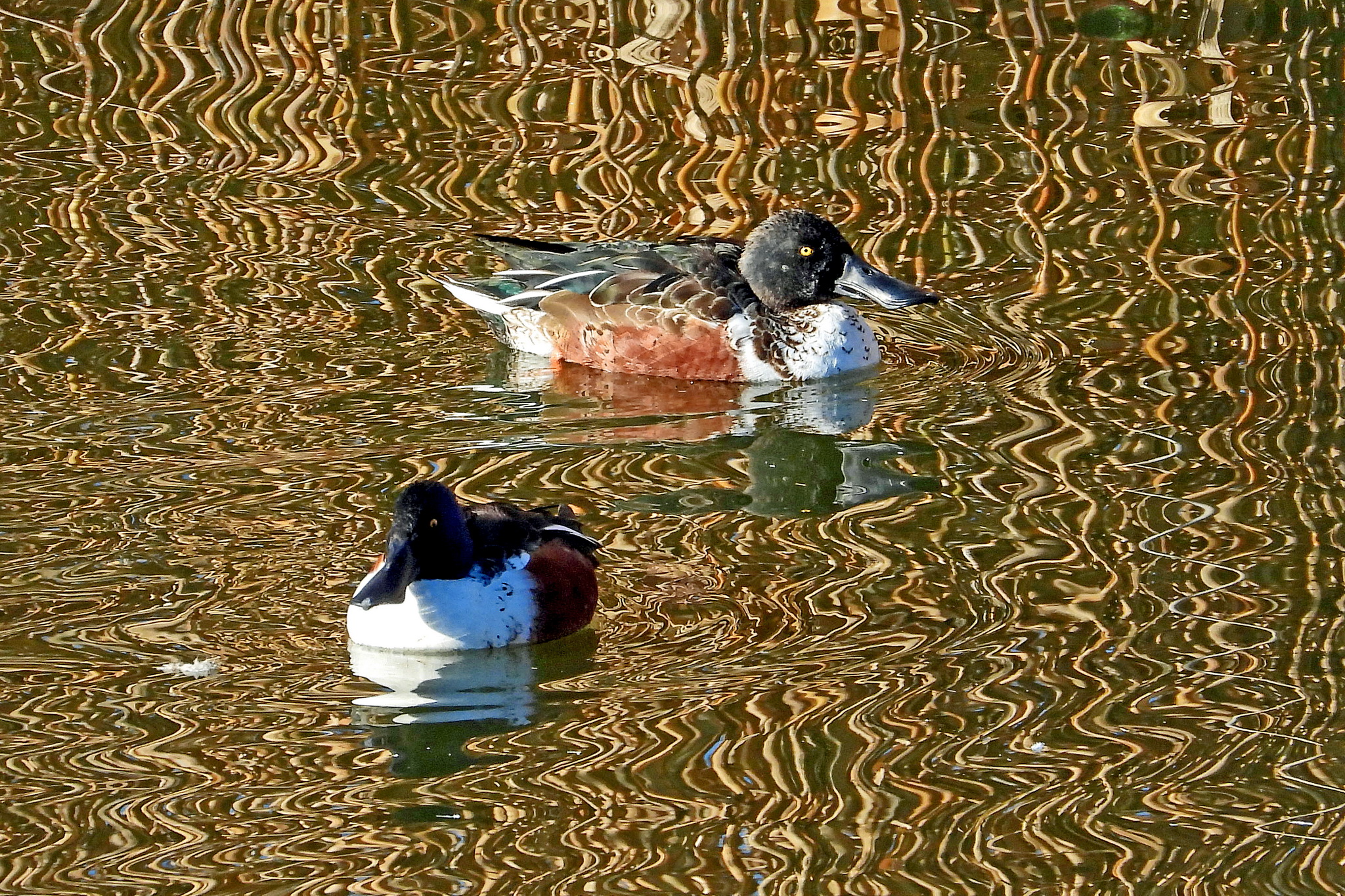 おっ、又「ハシビロガモ」のオスが二羽出てきた。