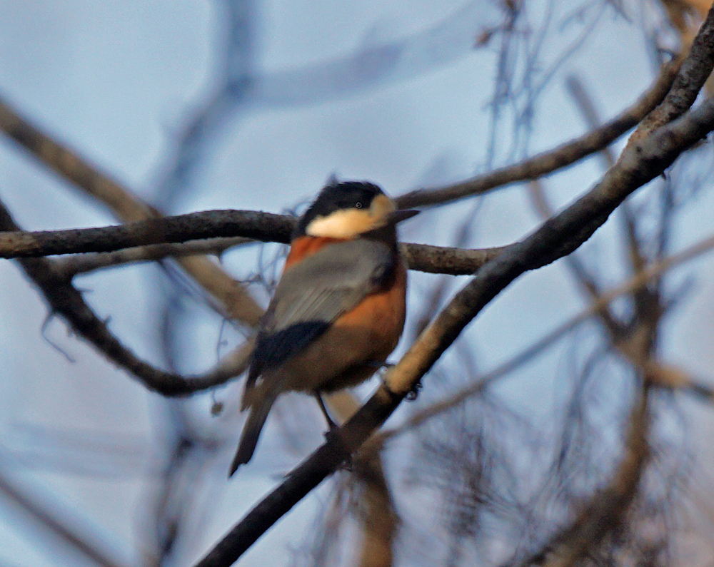 時々声が聞こえていたシロハラが、遠くの枝に止まりました。