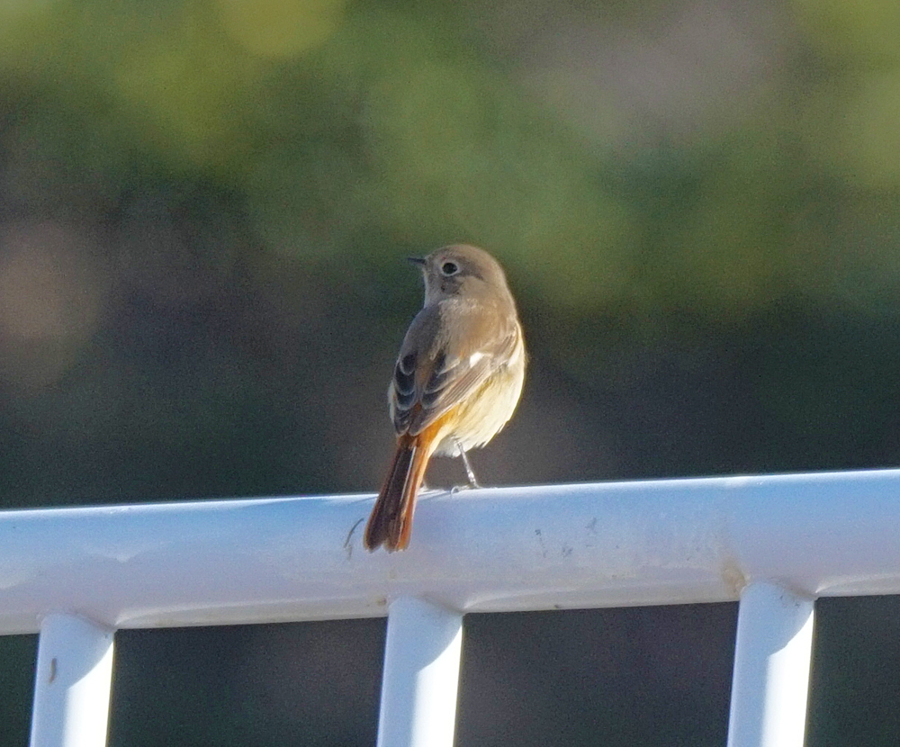 護岸のフェンスにジョウビタキ