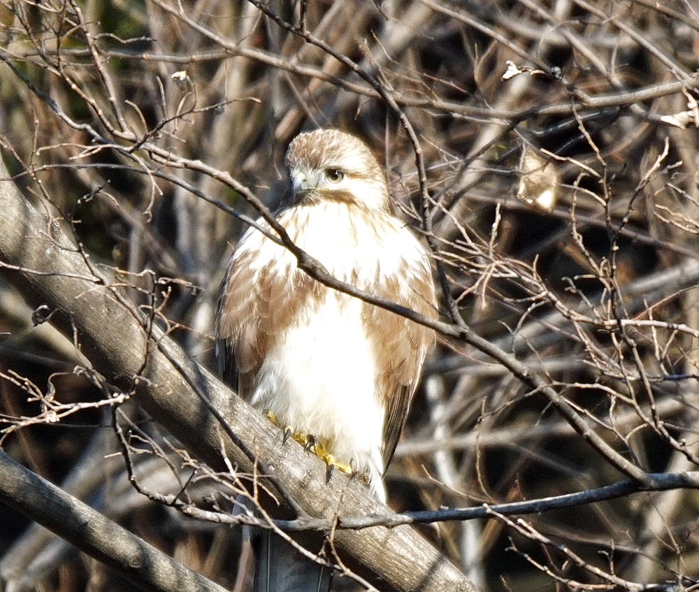 斜面林の縁、比較的近い所に、ノスリが止まっていました。 ノスリは可愛い顔をしているな、