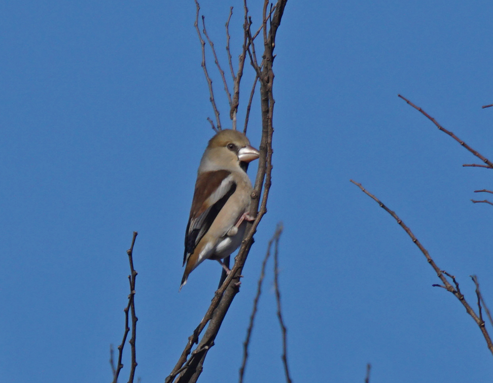 遊水地では今日も、ホオジロ、アオジ、カシラダカ、シメ、ジョウビタキ、など、ここに来れば出合える鳥たちが元気に動いていました。