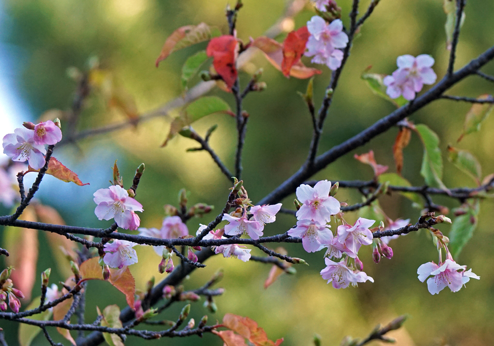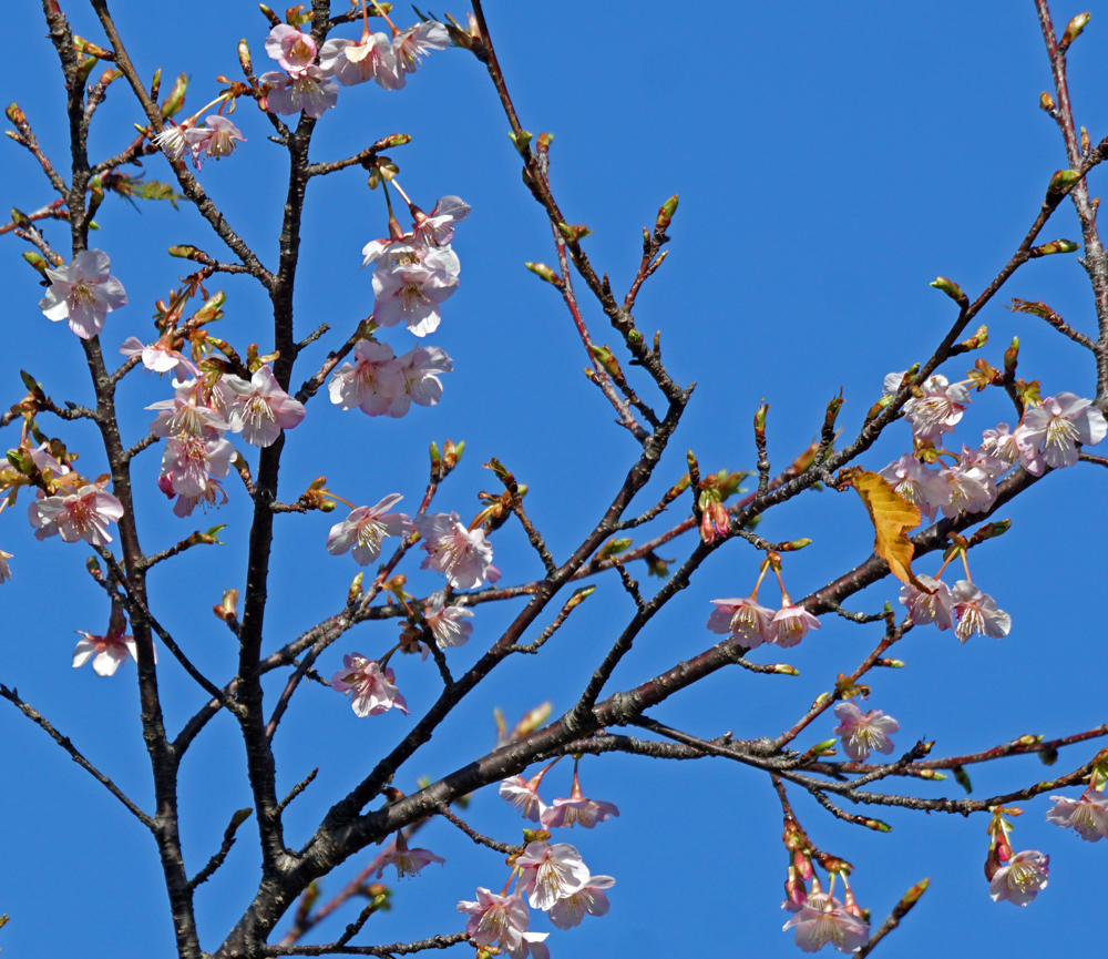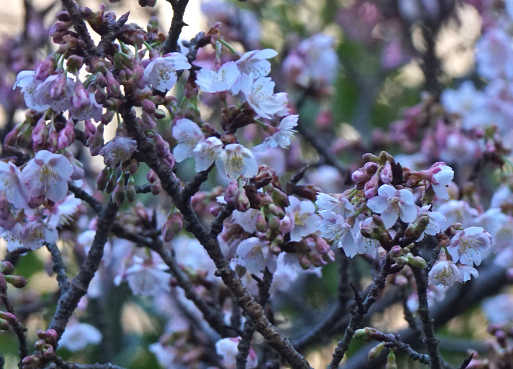あまり目立たない場所で、早咲きのサクラが2種、咲き進んでいました。どちらもカンヒザクラが片親の交配種ですが、この時期のサクラの花、毎年ちょっと楽しみにしています。