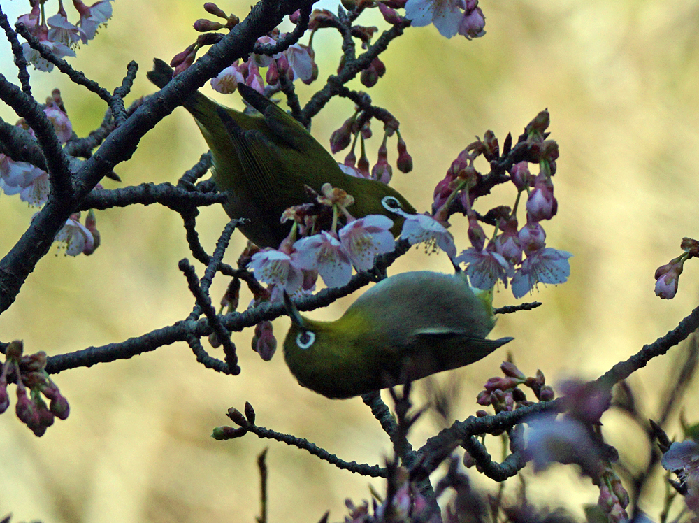 長久保 サクラの花にメジロ