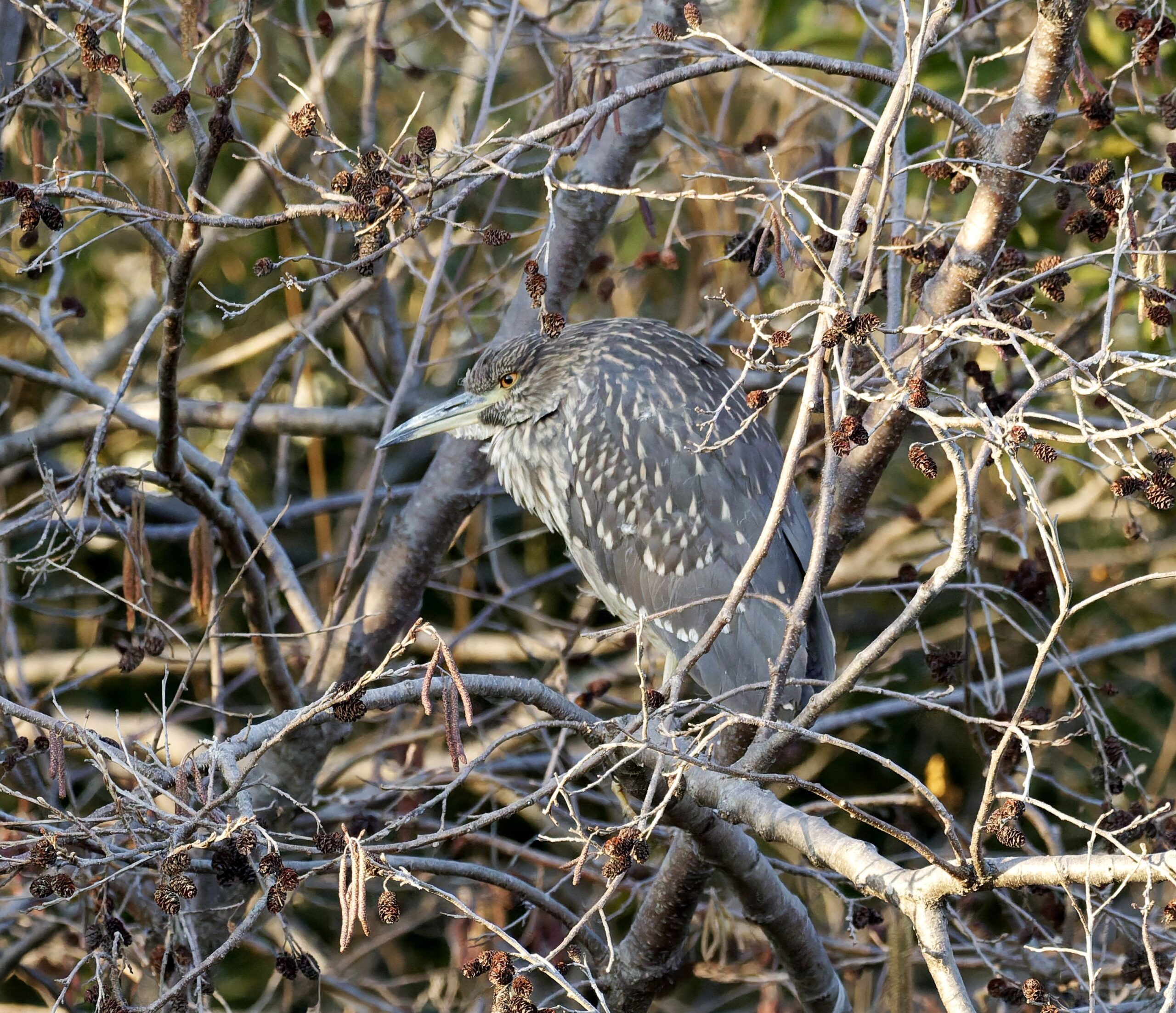 探鳥も終盤、ゴイサギが幼鳥含めて、7羽くらい樹木に止まっていました。