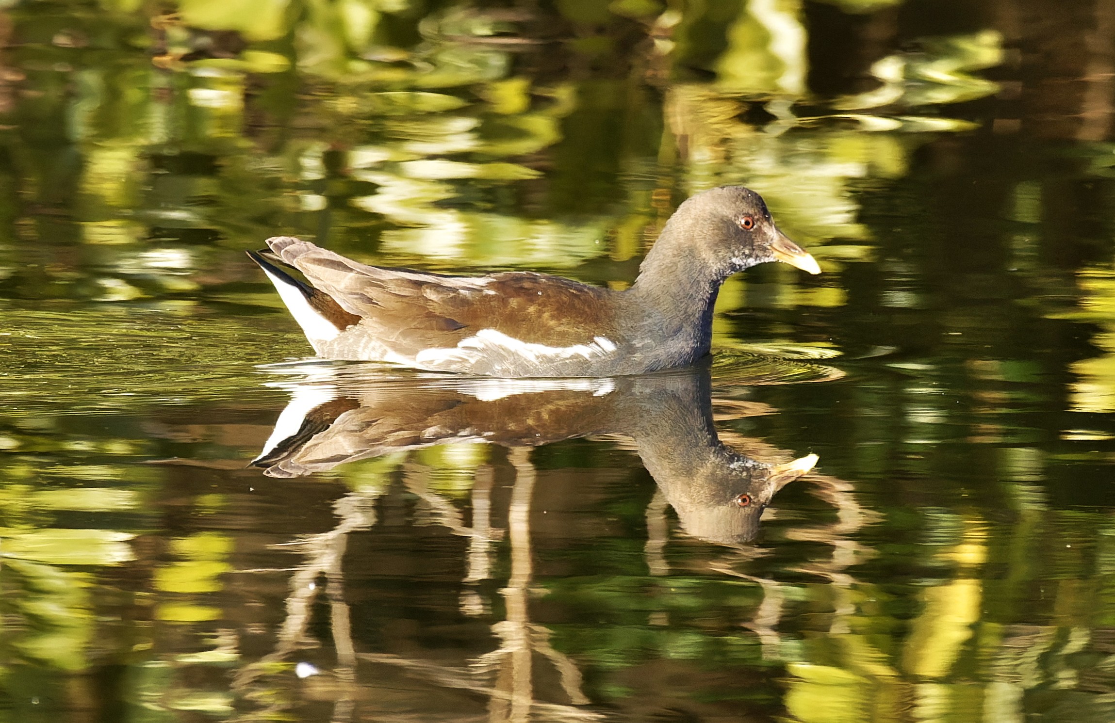 更に進むと、オナガが飛び交い、水上ではバンが気持ちよさげに