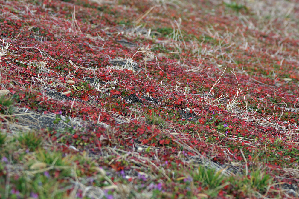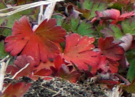 何だろうとよく見ると、紅葉したアメリカフウロの葉のよう。 こんなに一面に赤くなっているのは、初めて見ました。