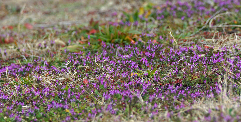 暦通りの、北風の冷たい日になりましたが、池の南斜面は、ホトケノザが花いっぱいでした。