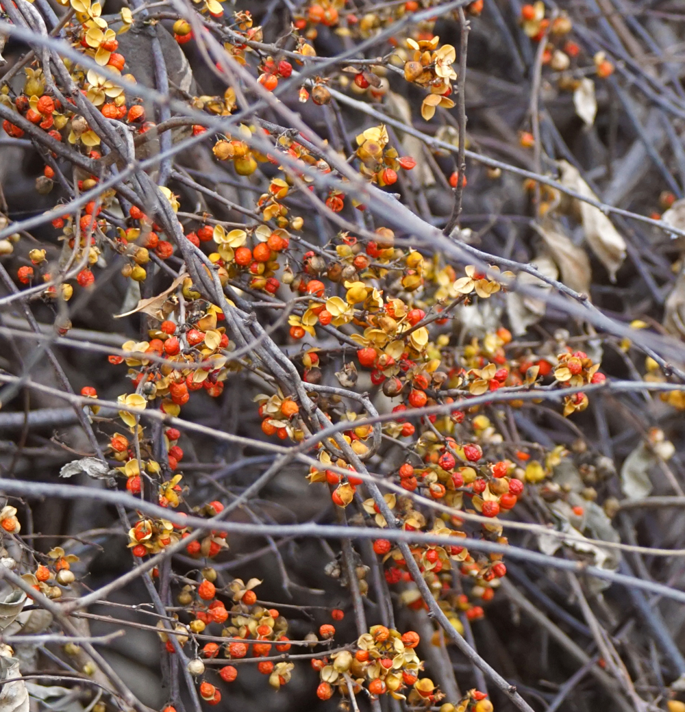 近くにツルウメモドキの実がどっさり。 枯れ色の中で明るいオレンジがきれいでした。
