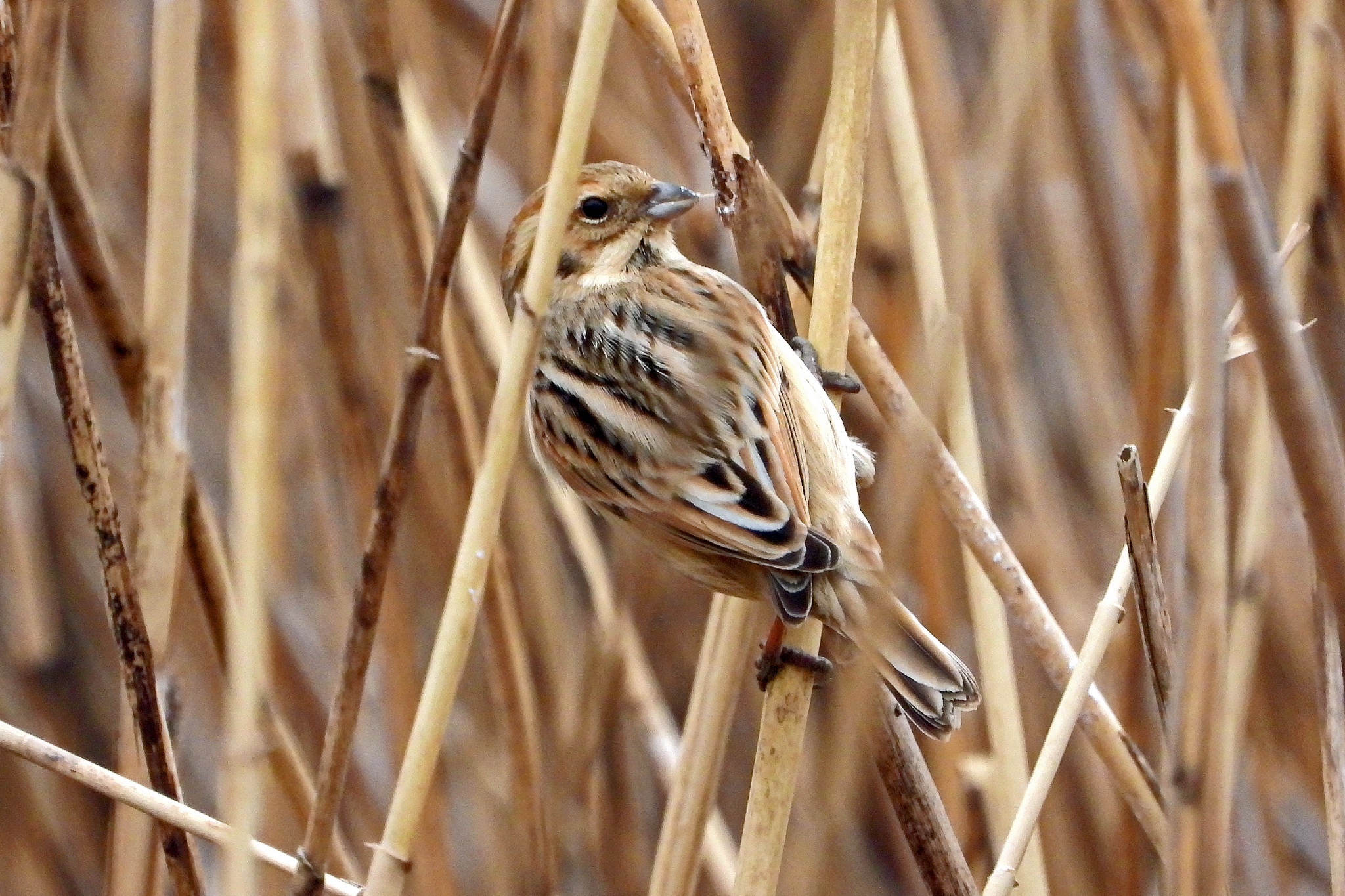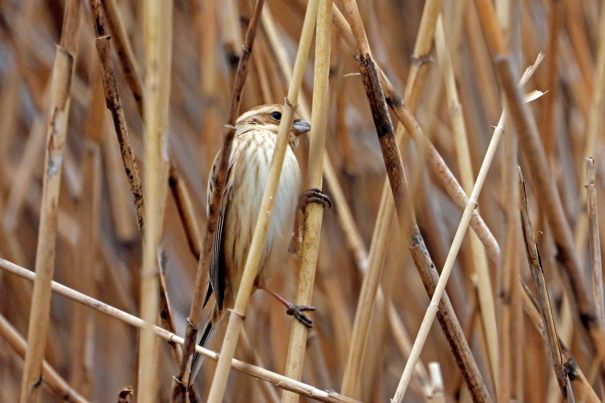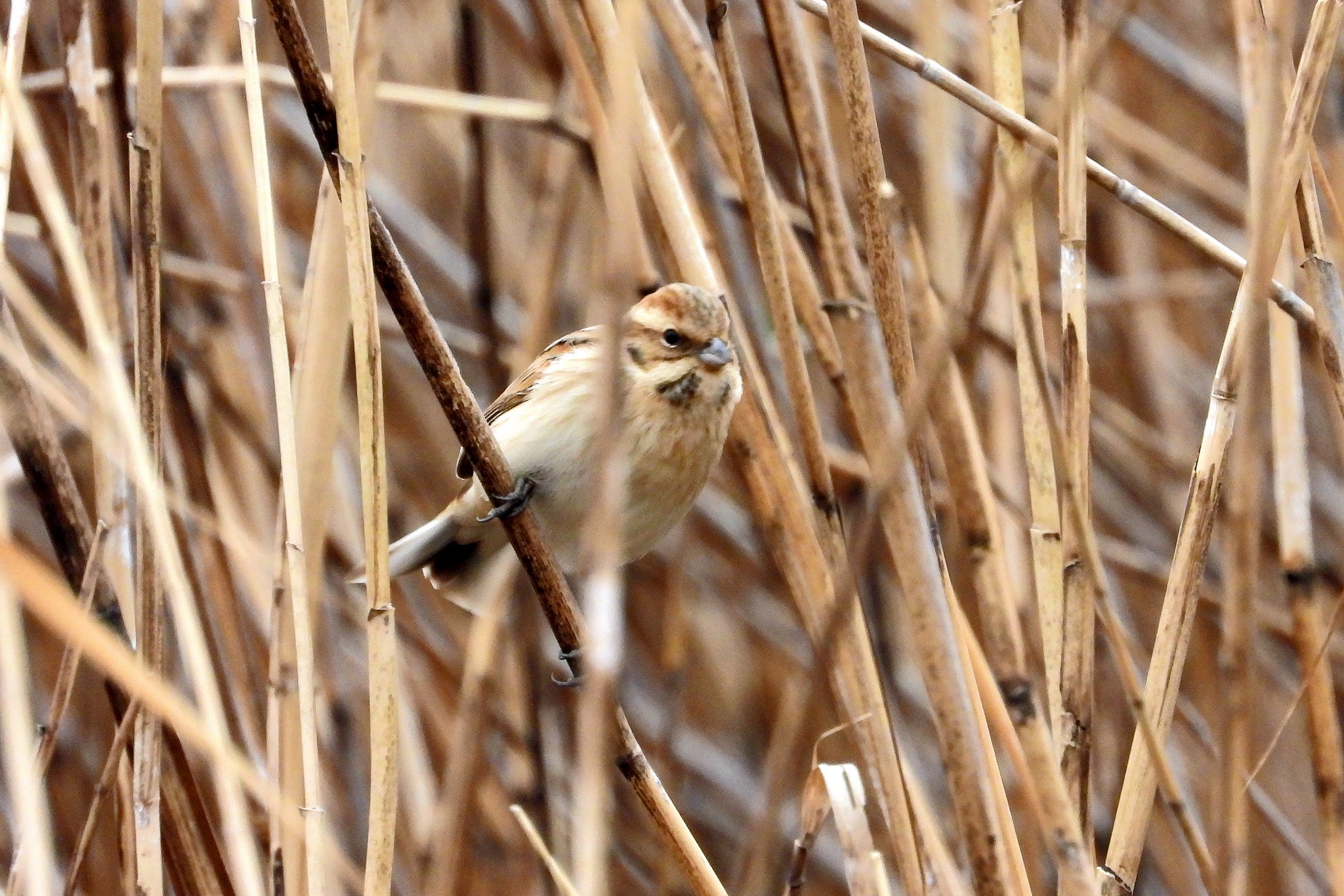 葦原の中をよーく見ると、居ますね「オオジュリン」。