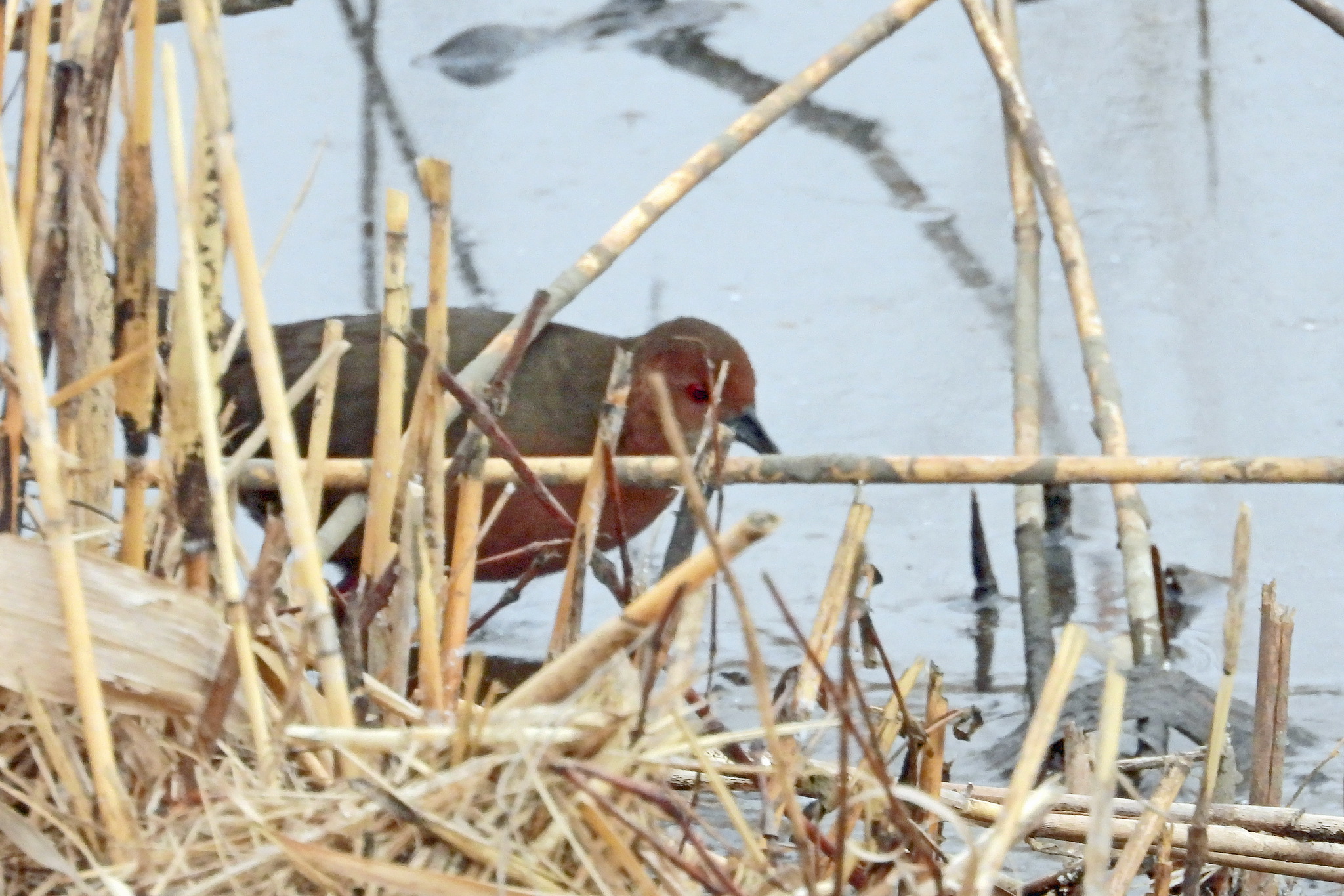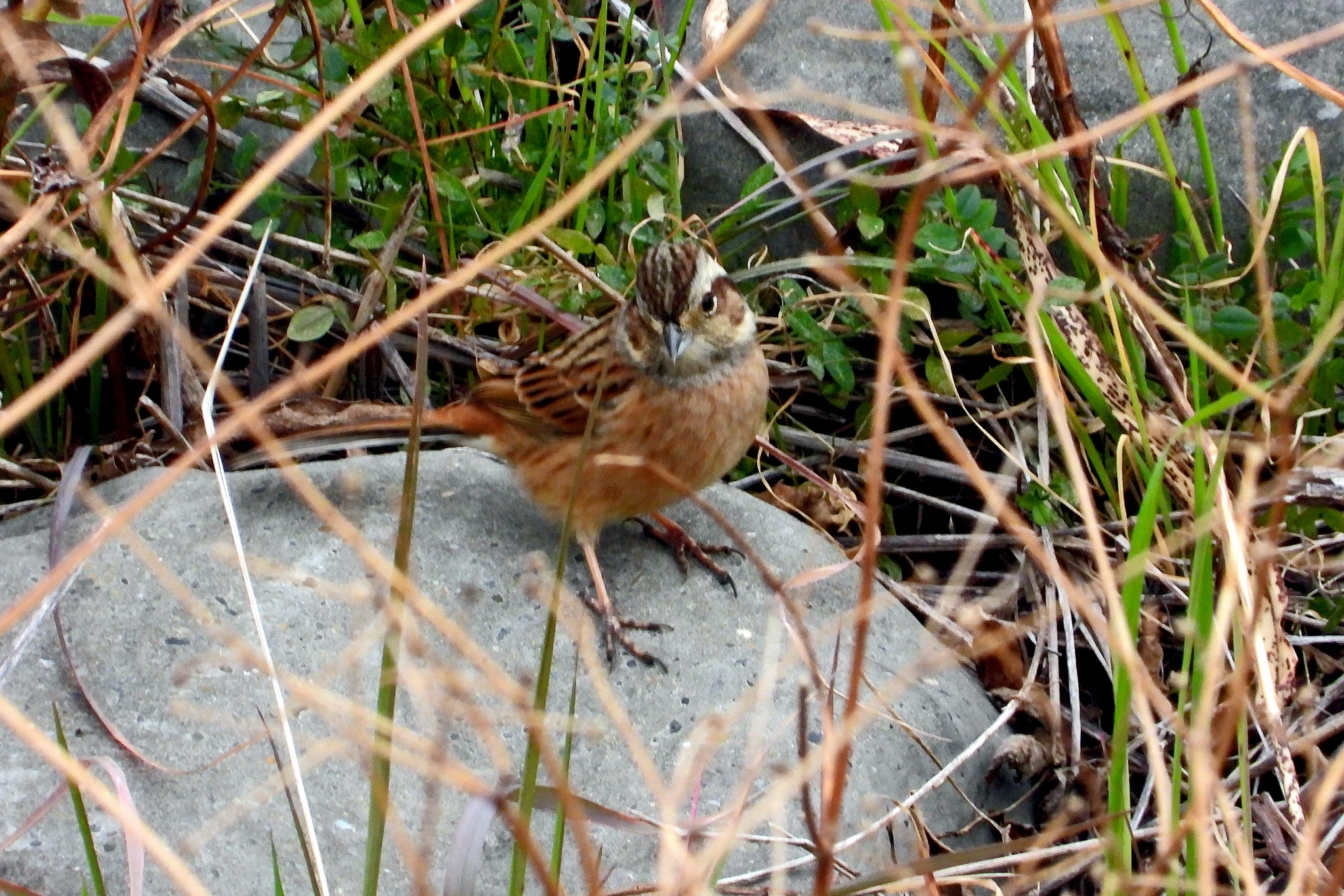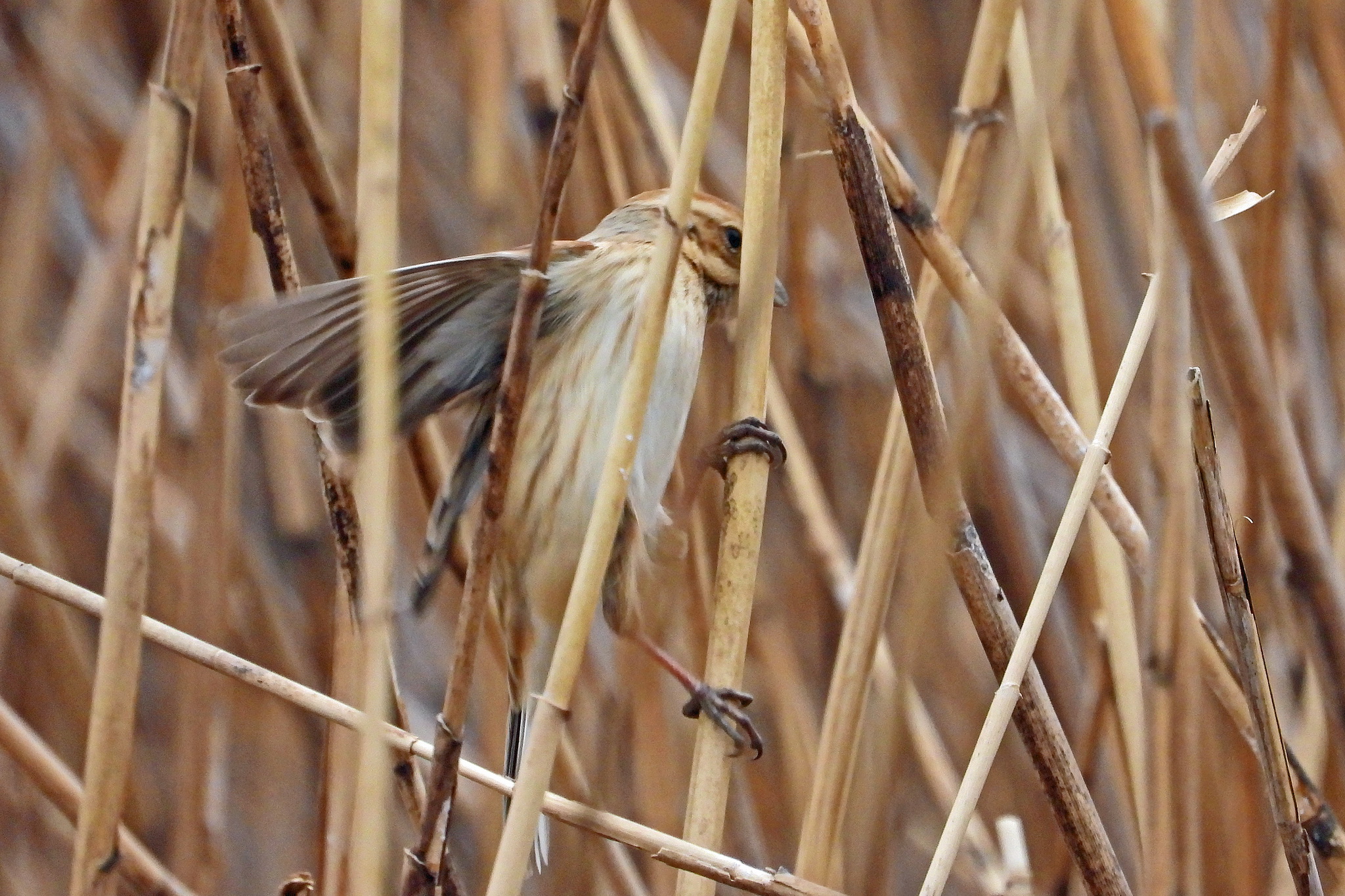 葦原の中をよーく見ると、居ますね「オオジュリン」。
