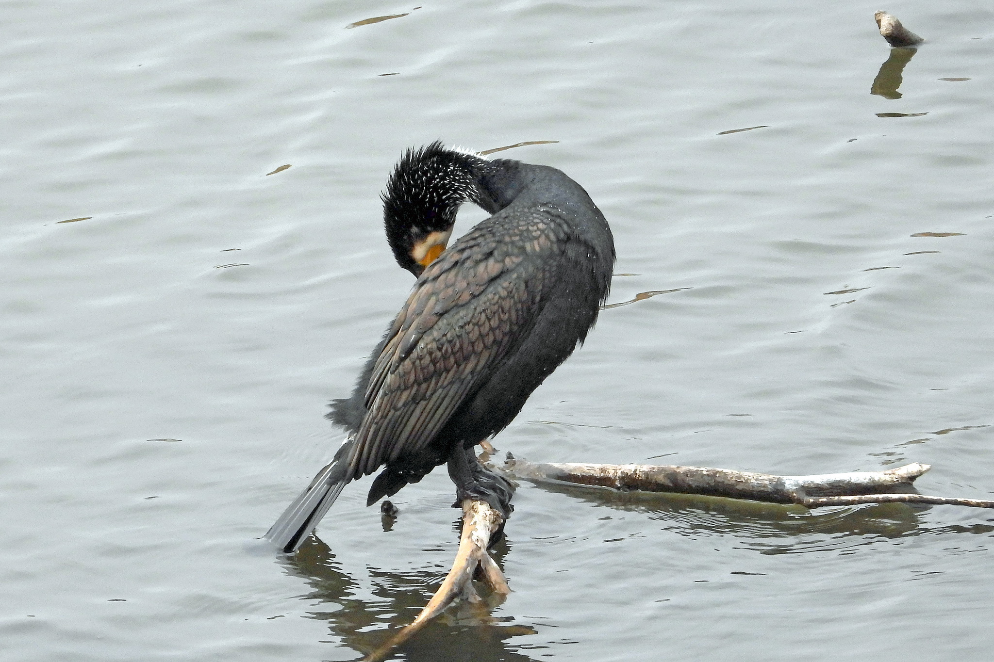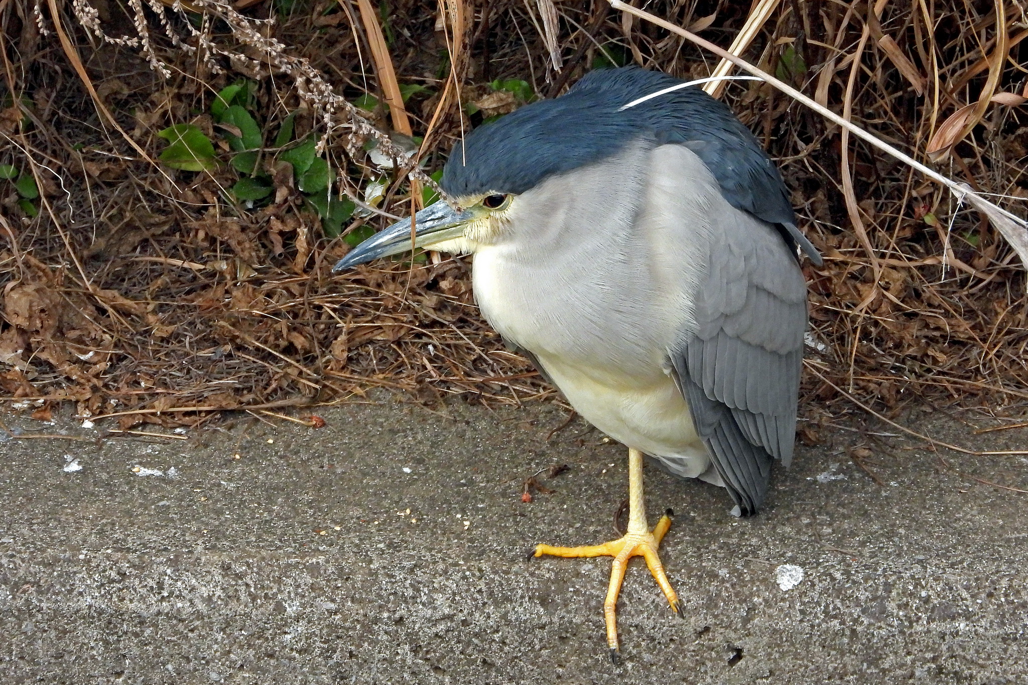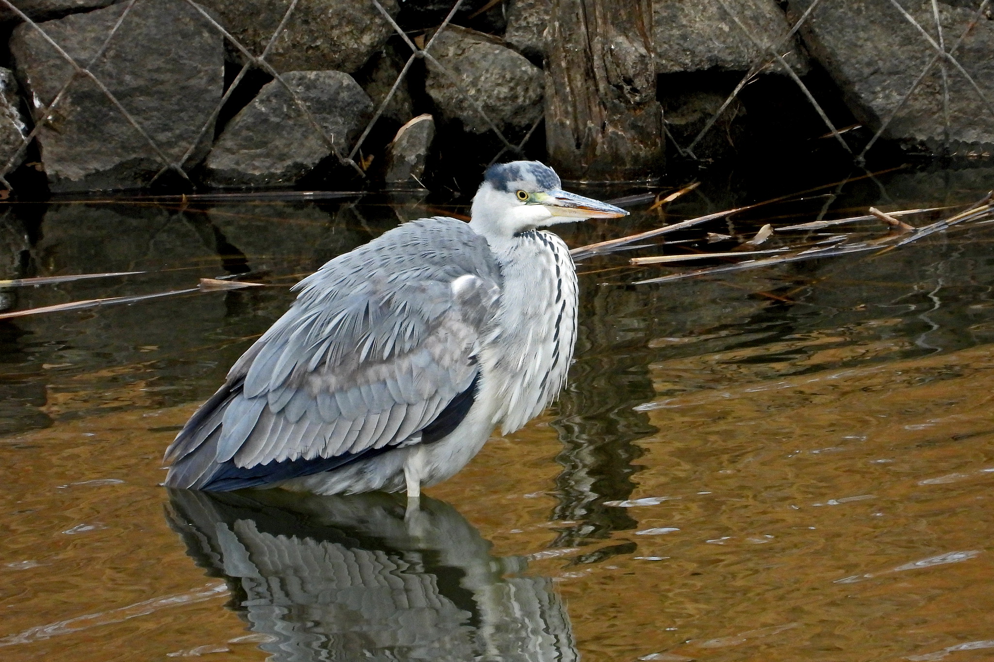 「アオサギ」が首を縮めて寒そうに丸まってますね。