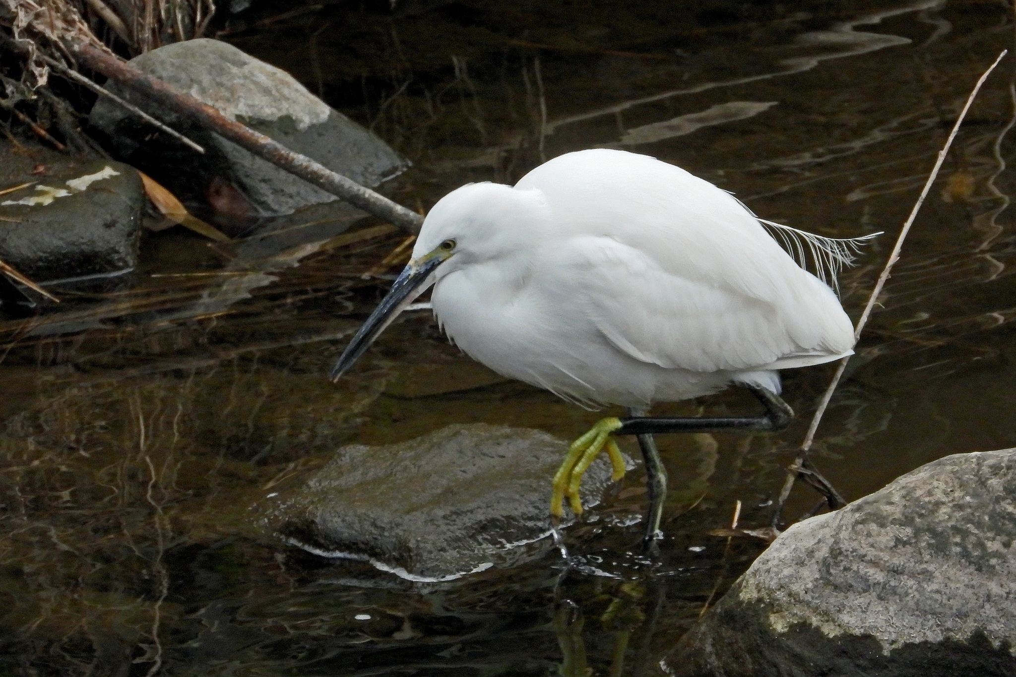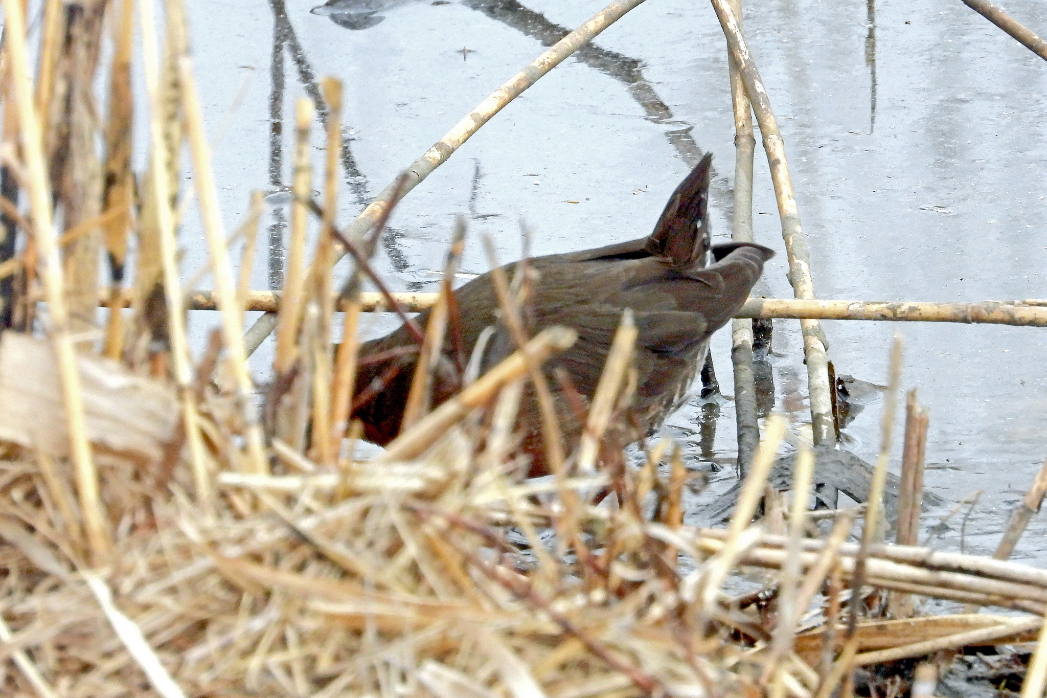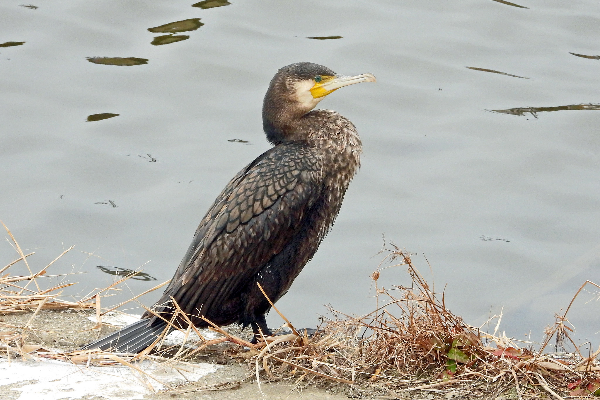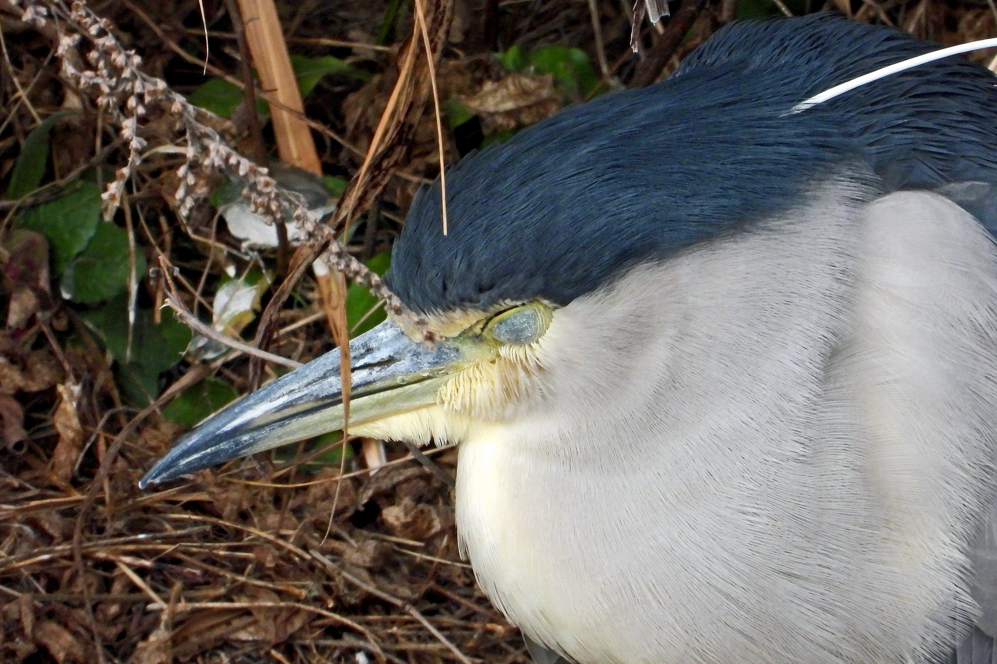 「アオサギ」が首を縮めて寒そうに丸まってますね。