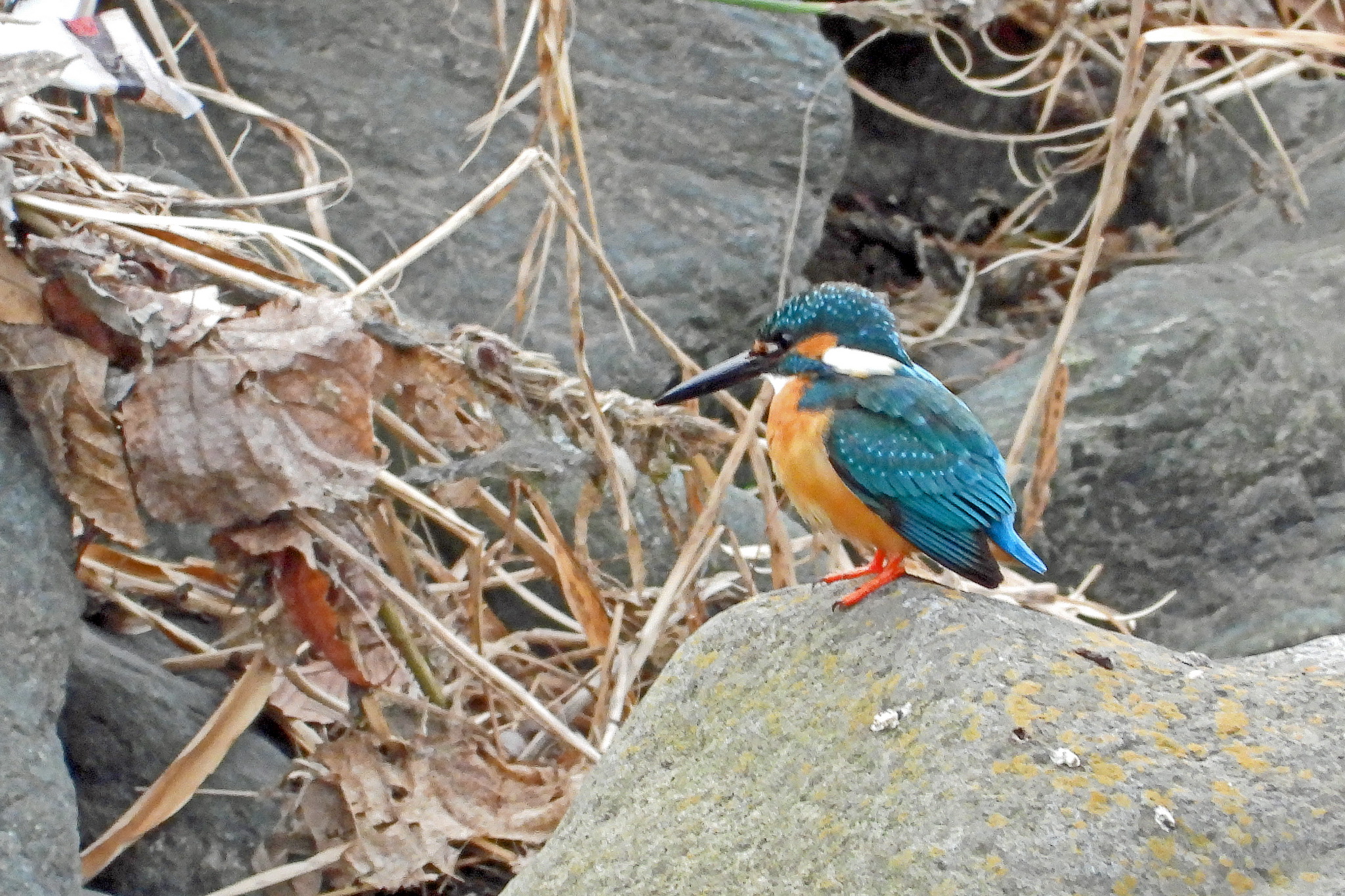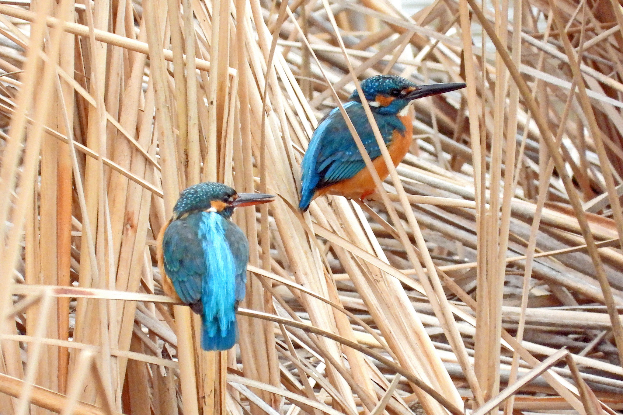 葦原の中に青い色が二つあるので、急いでズームアップ。