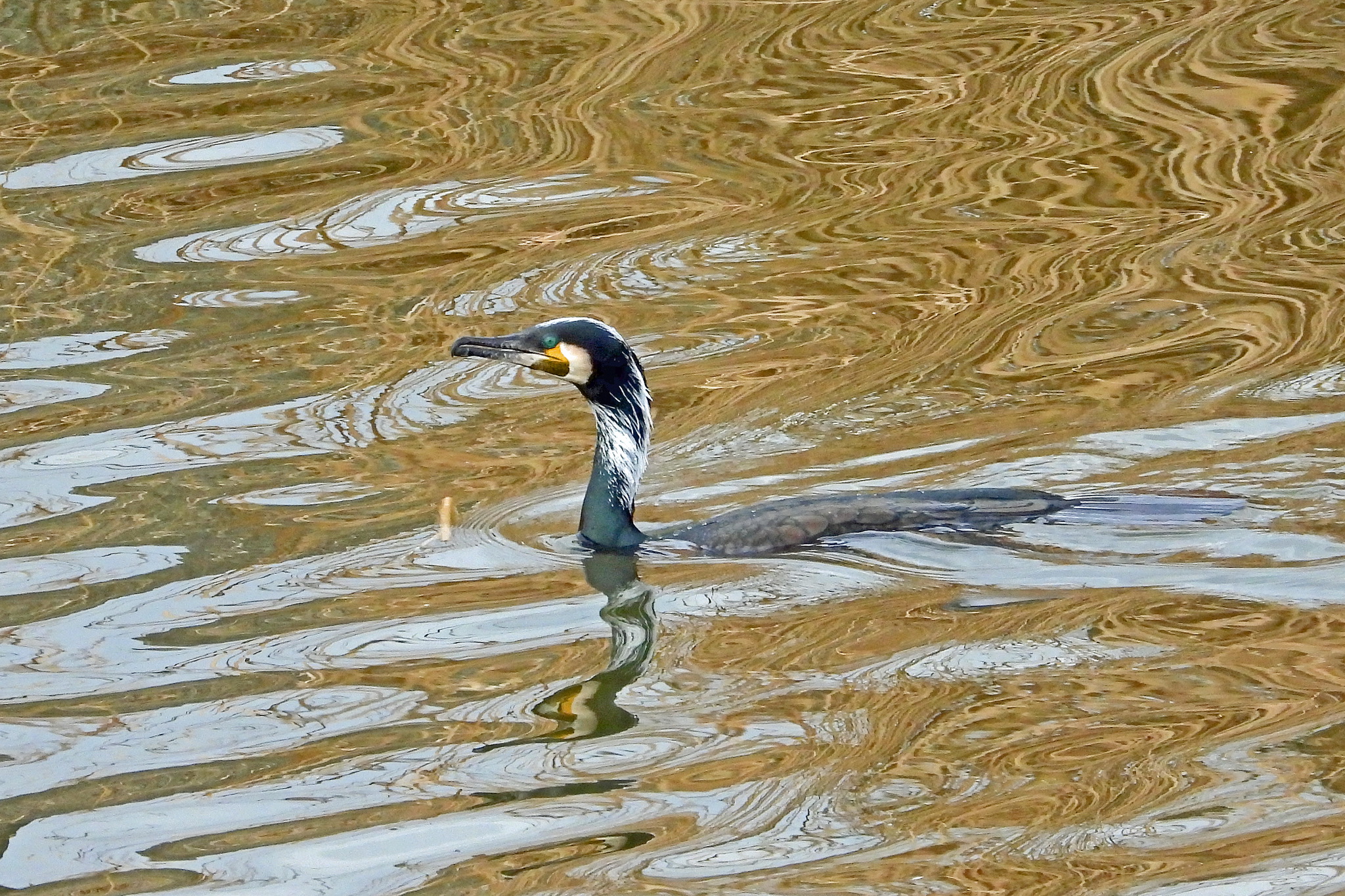 「カワウ」が餌探ししてました。