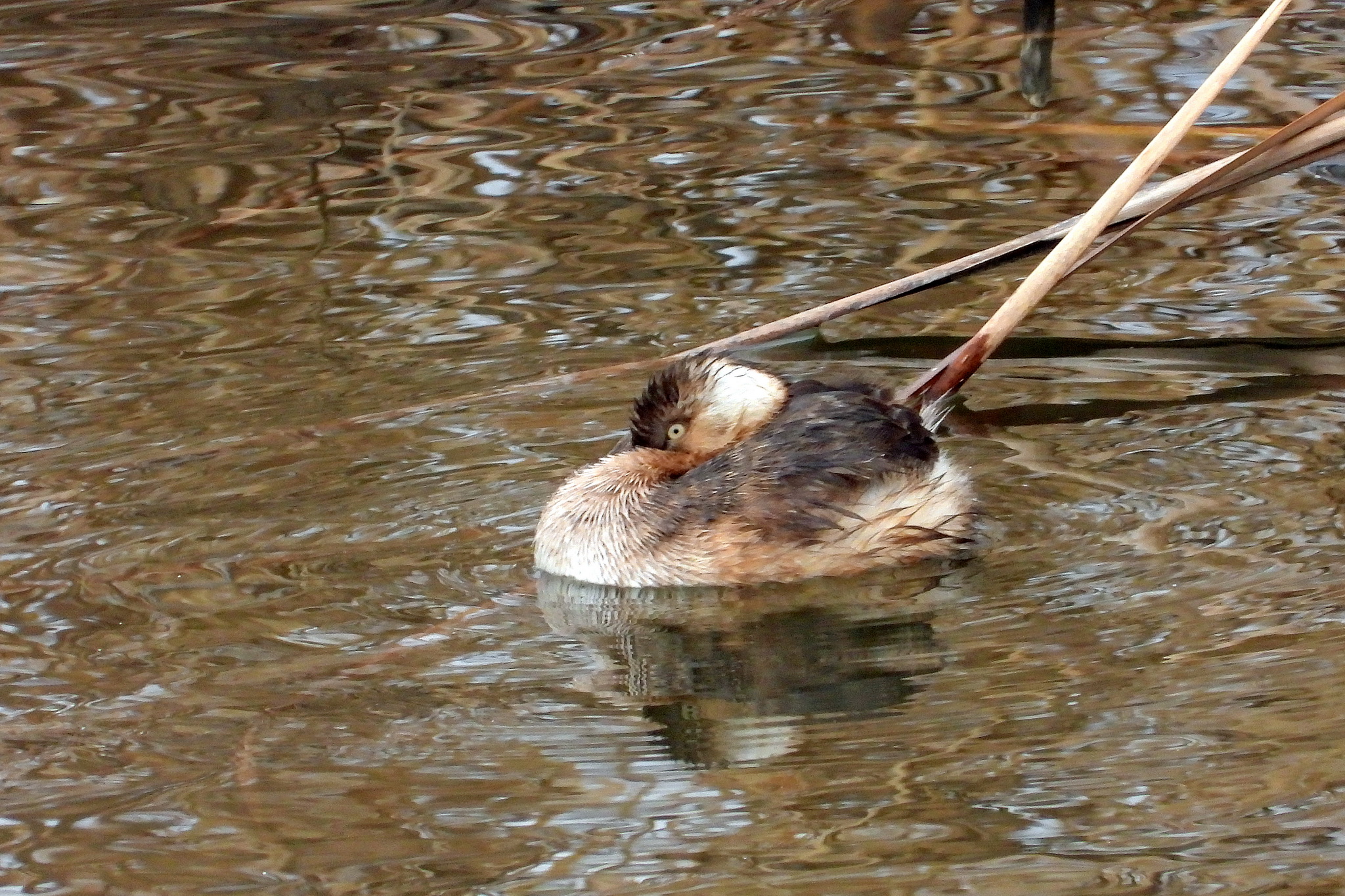 「カイツブリ」がうずくまってました。