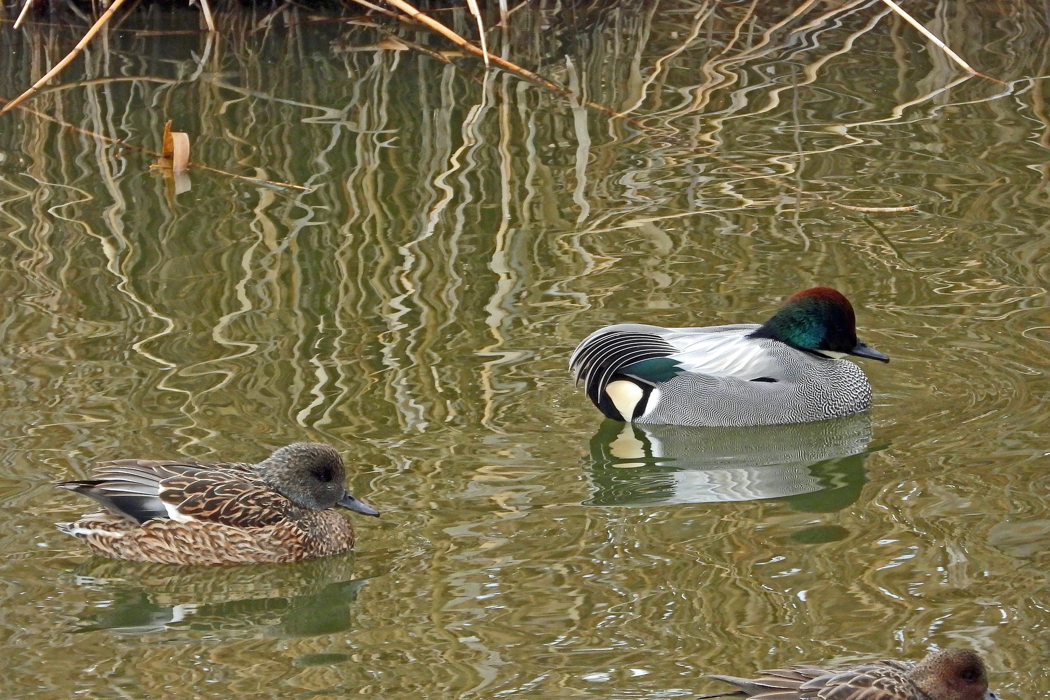 「ヒドリガモ」のオスにメスです。