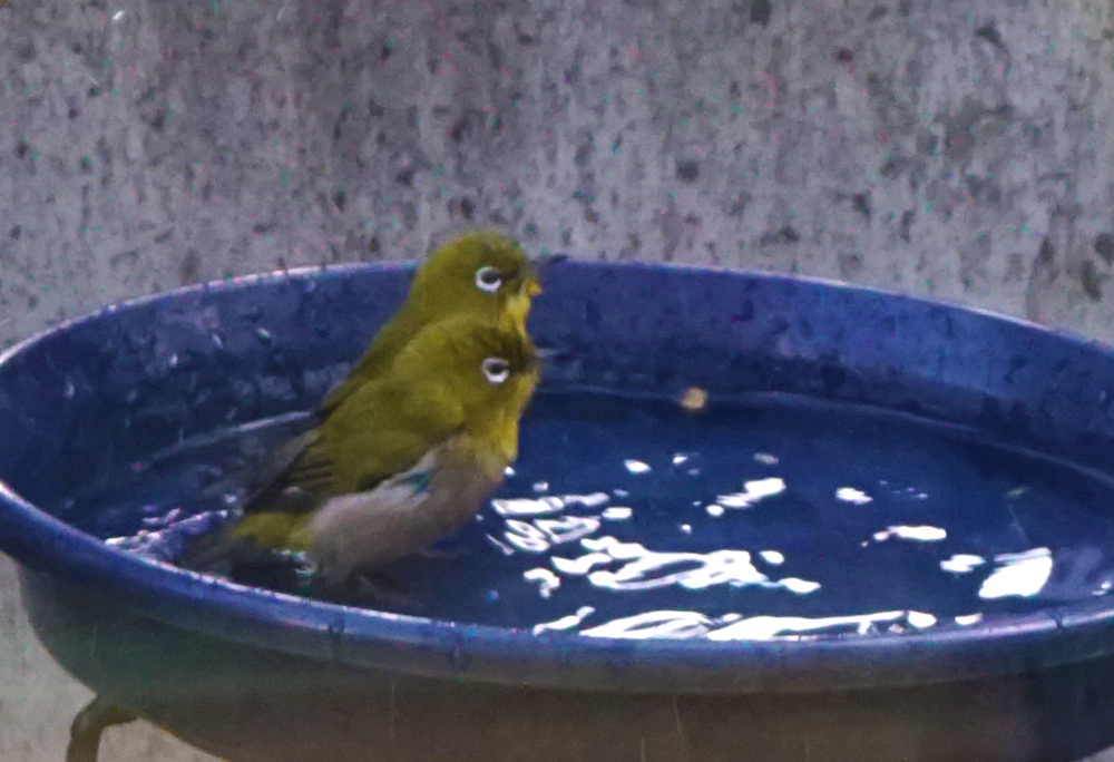 雨が降らず、水溜まりも無いのでしょう。最近は水浴びにもよくやって来ます。