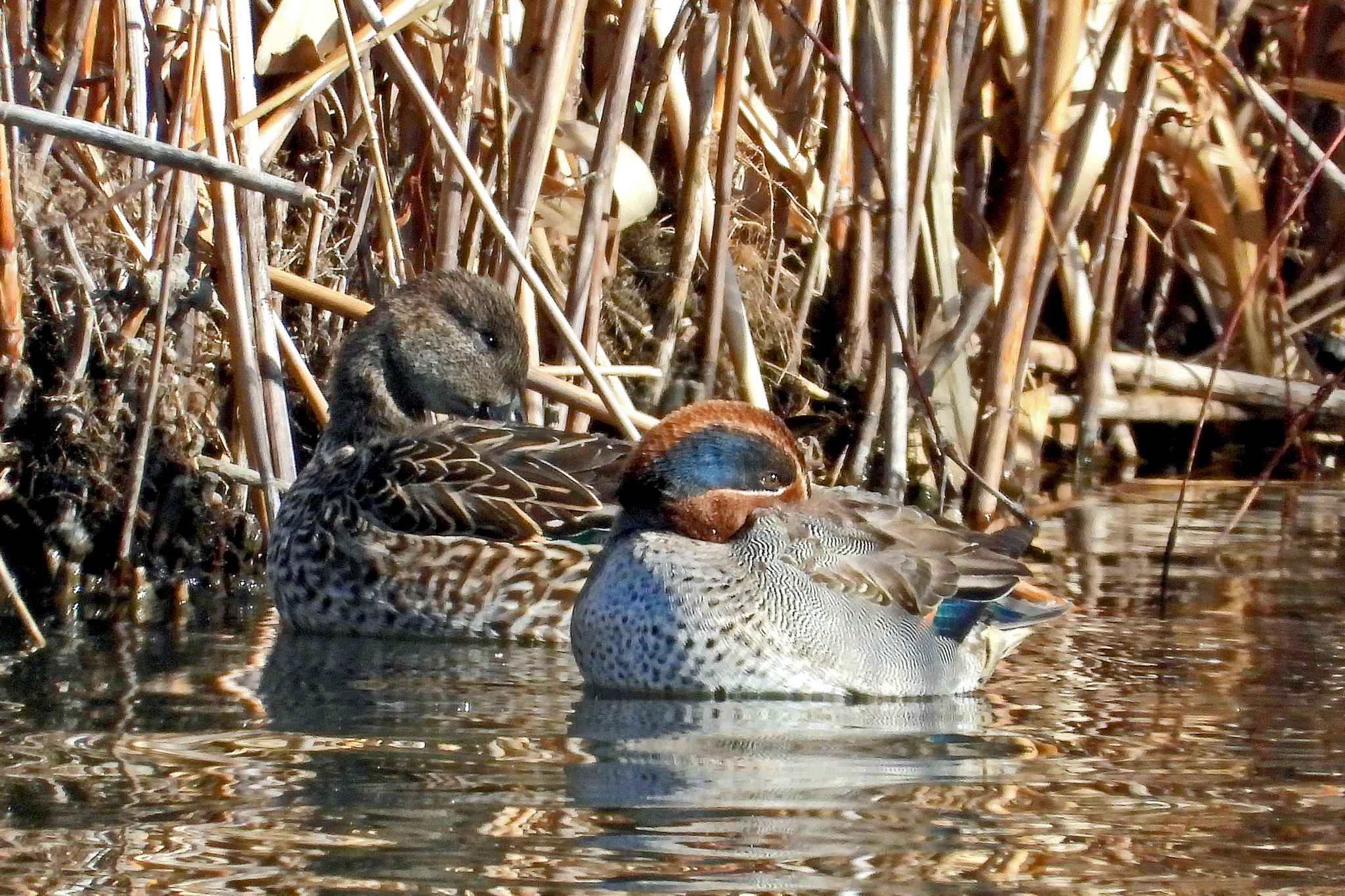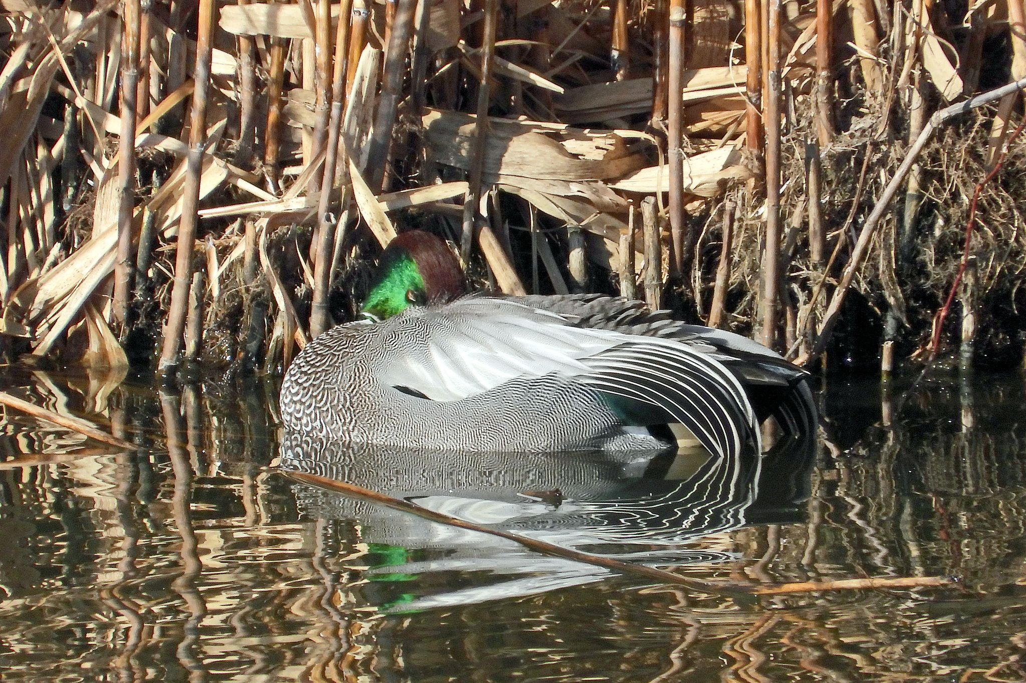おっ、カモが居る、なんだ「コガモ」だ、残念。