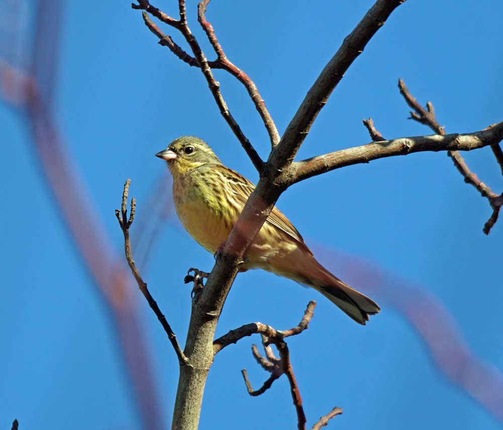 アオジは高い枝に。 今年も囀る姿が見たいです。