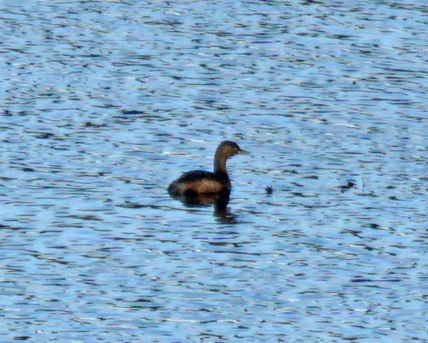 橋から川を見ると、遥か遠くにカイツブリの姿が見えましたが、もう時間切れです。