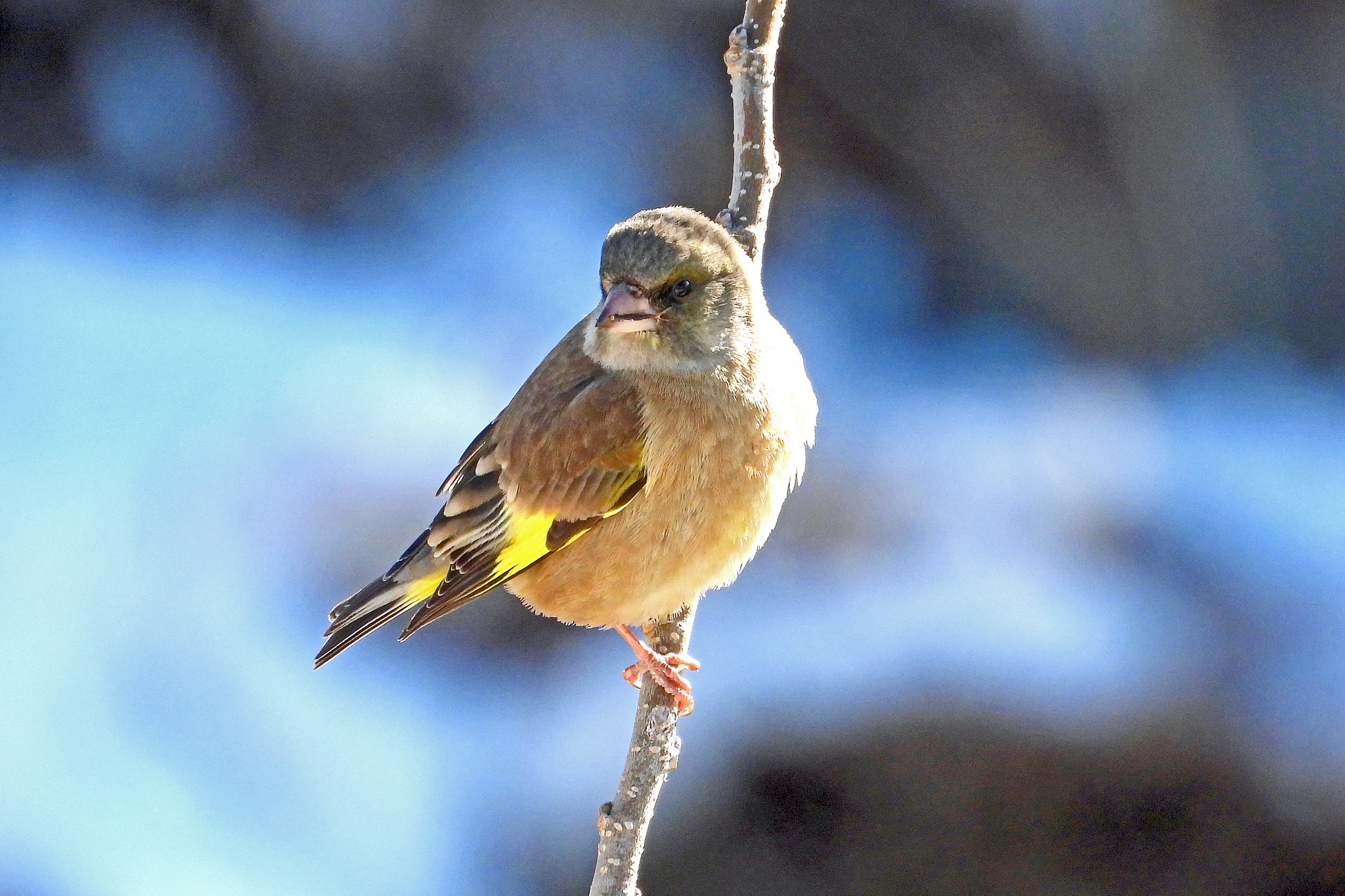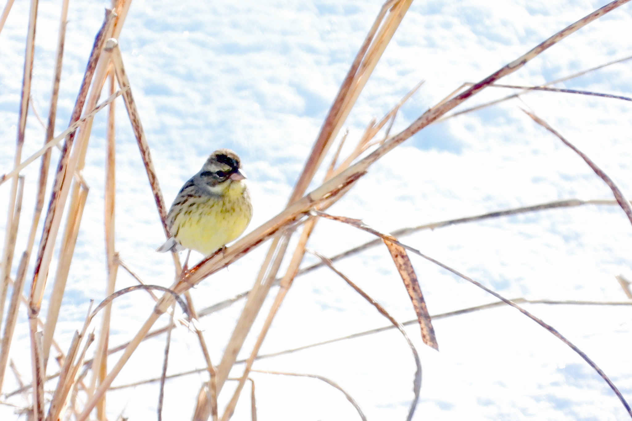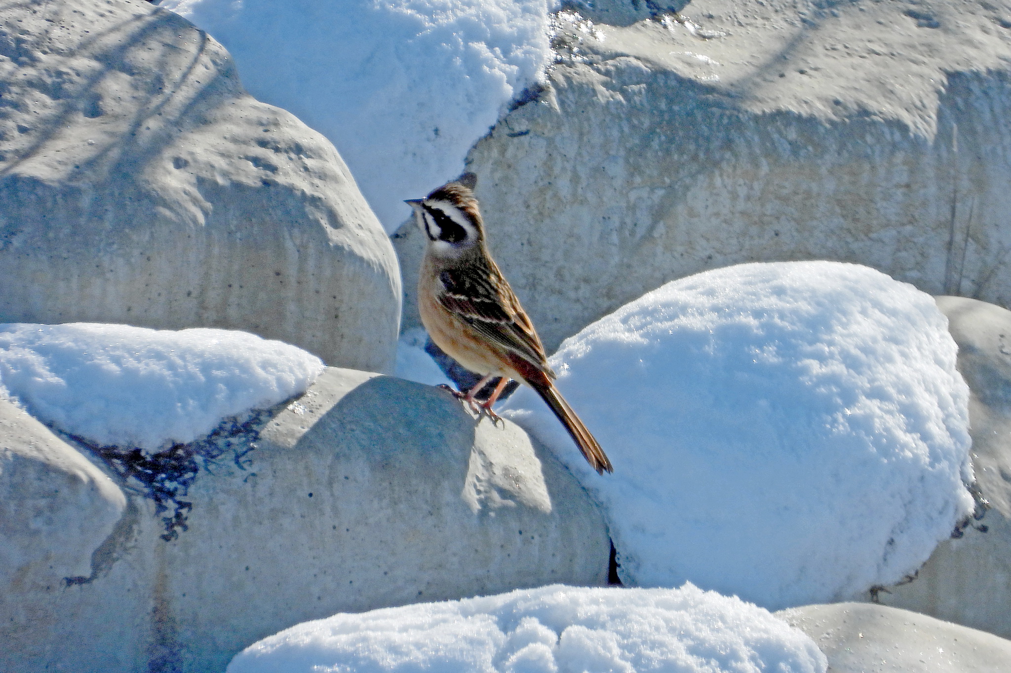 あっ、シギチ系の鳥が飛んで来て、凍った遊水地に着氷しました。