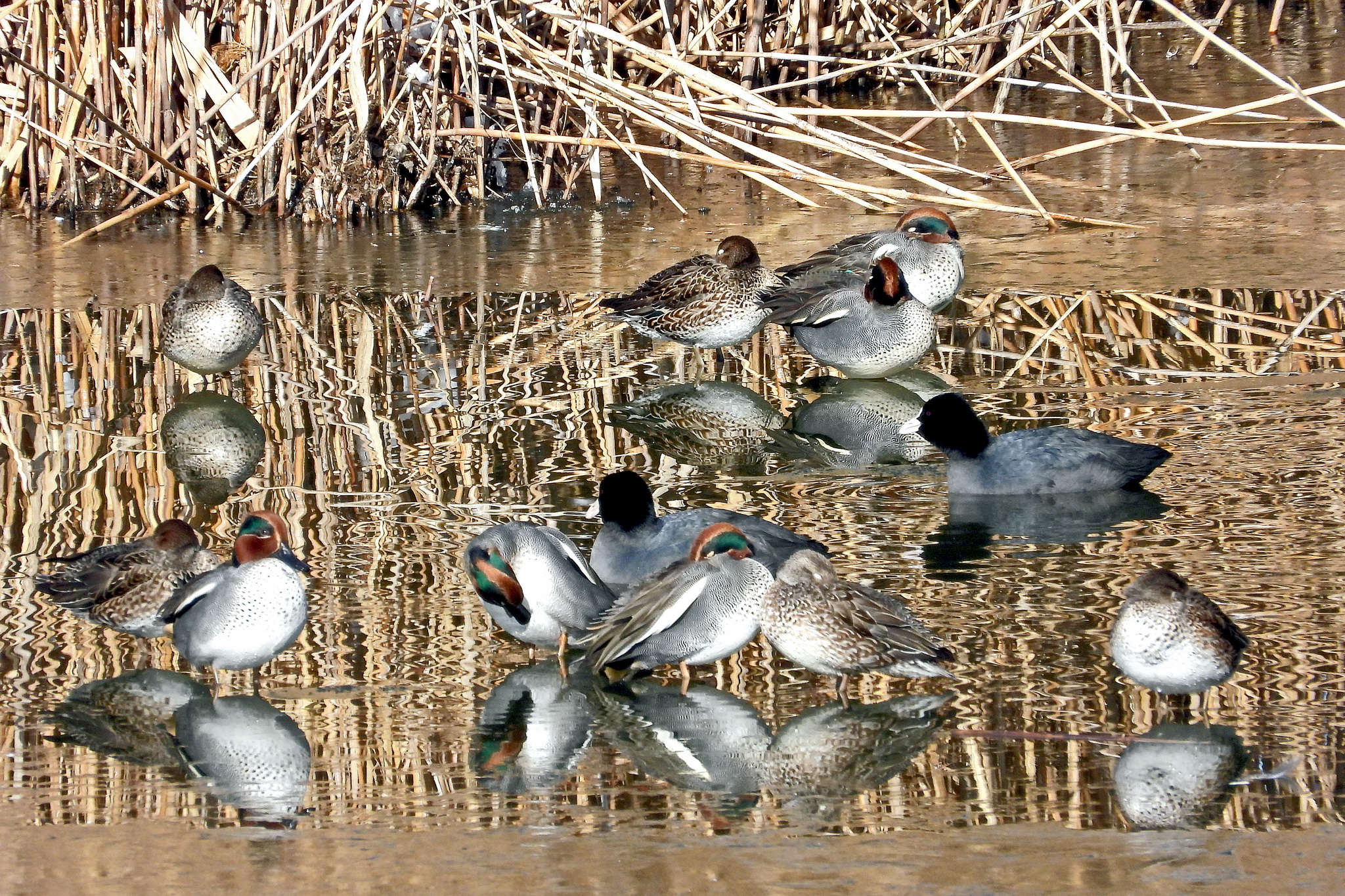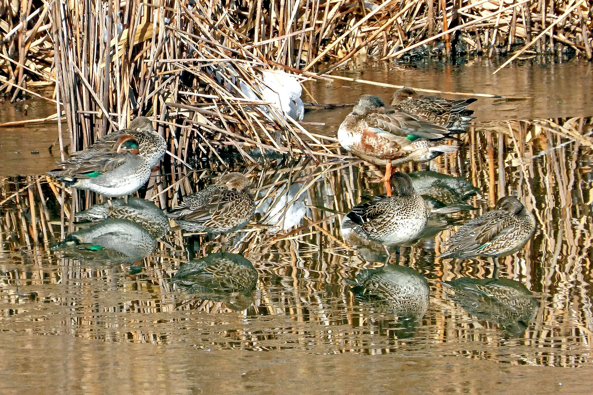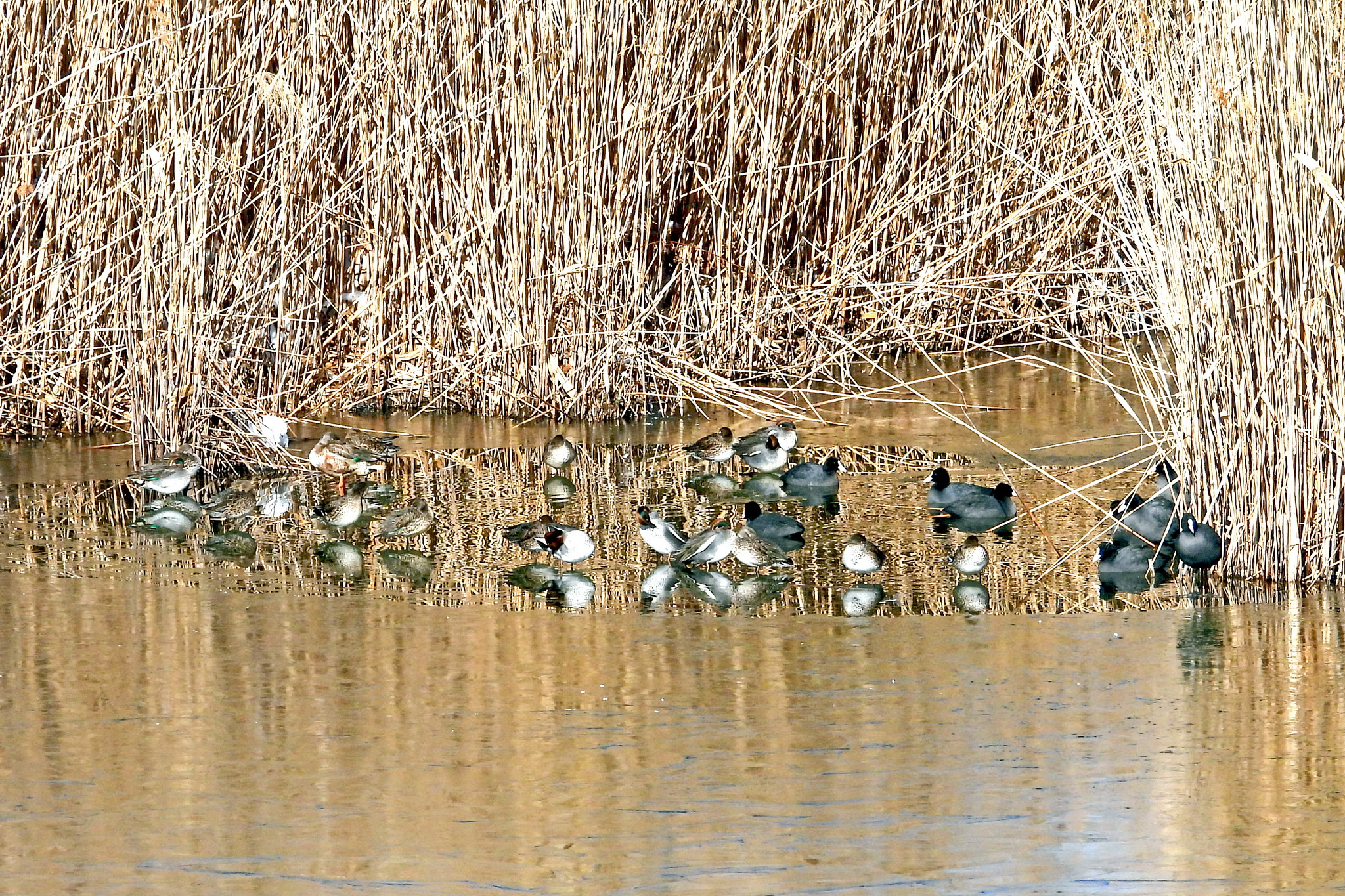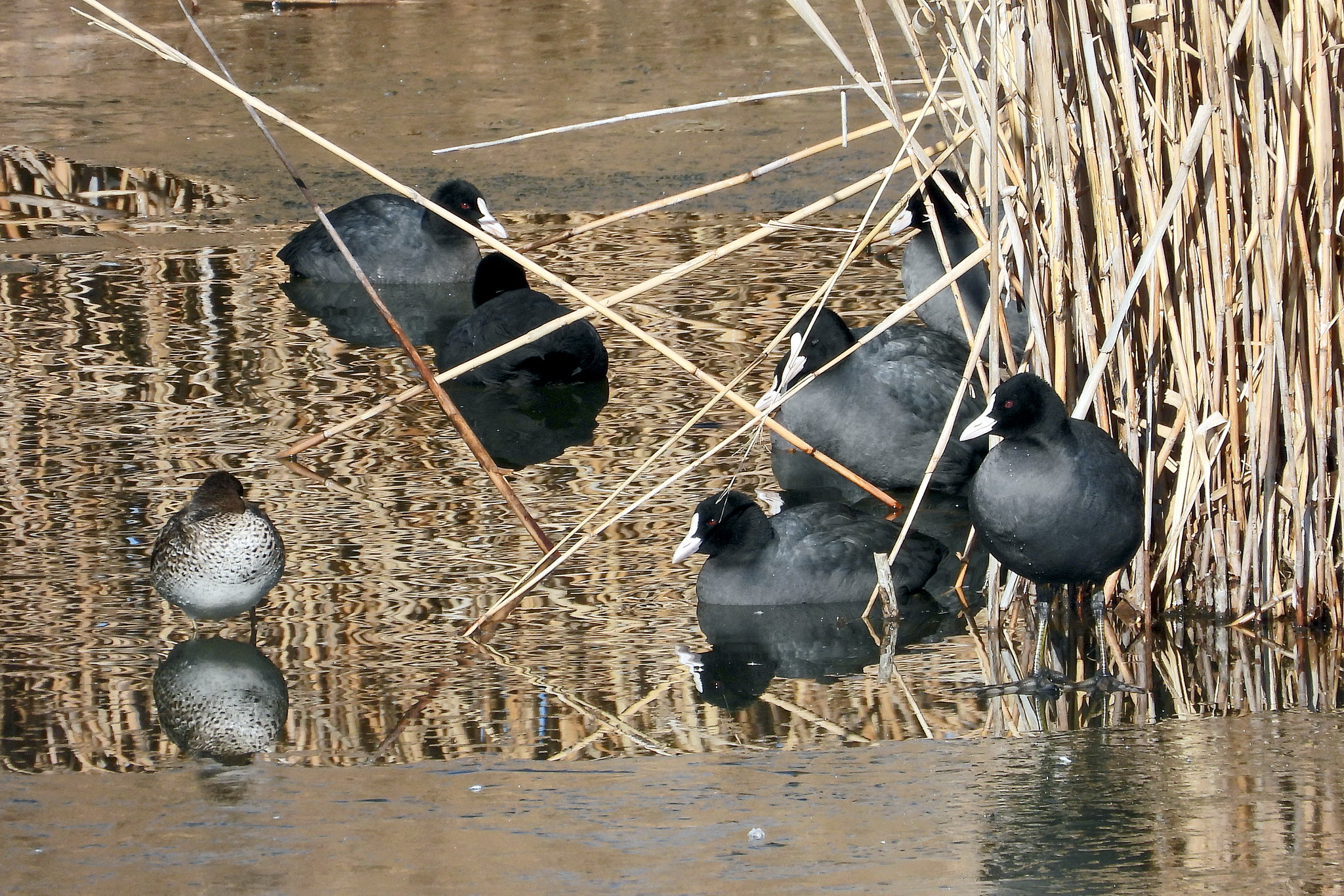 ほとんどが「コガモ」で、「ハシビロガモ」「オオバン」が居るようです。