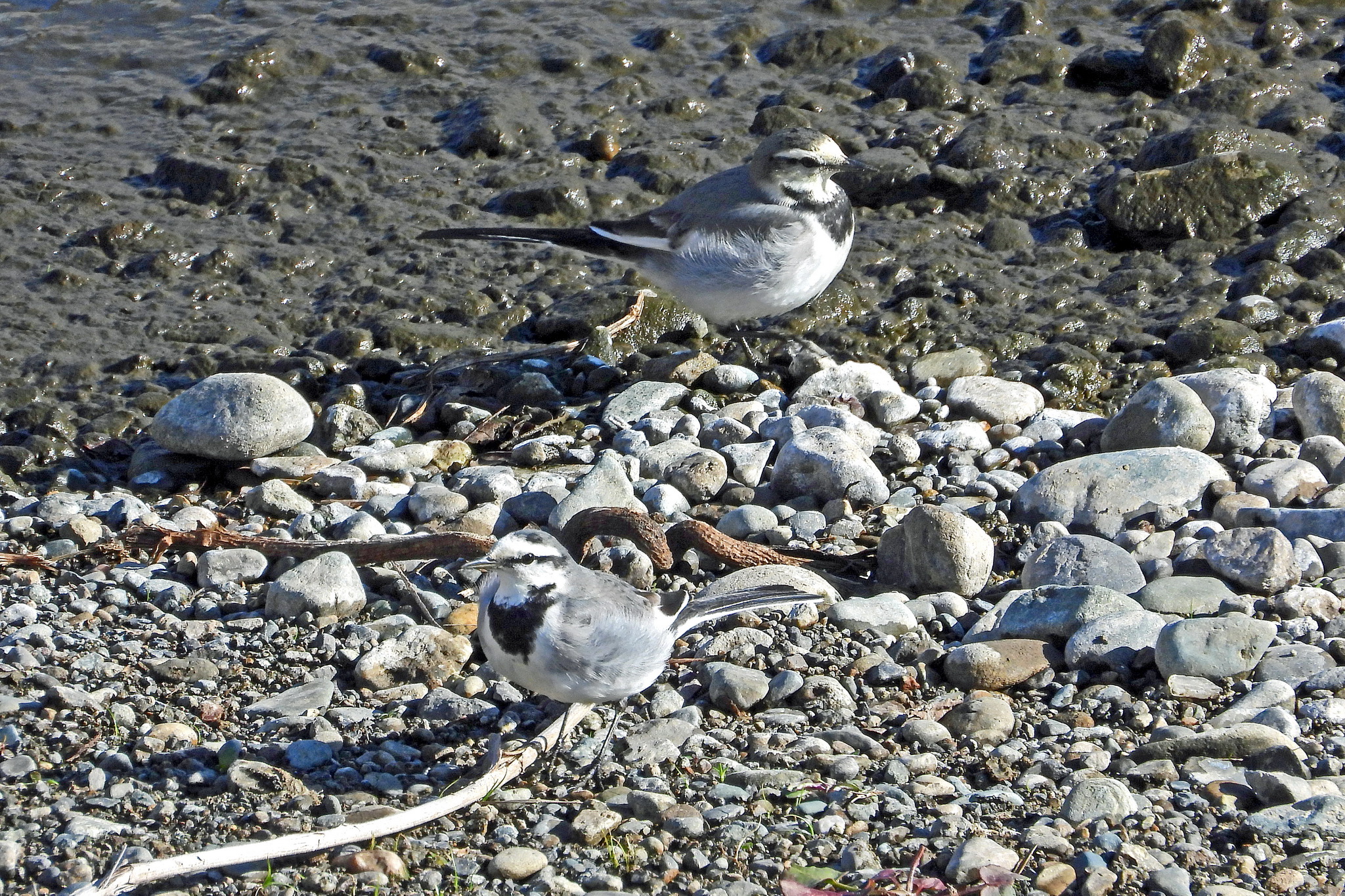 川を覗くと、二羽の「ハクセキレイ」が居ました。