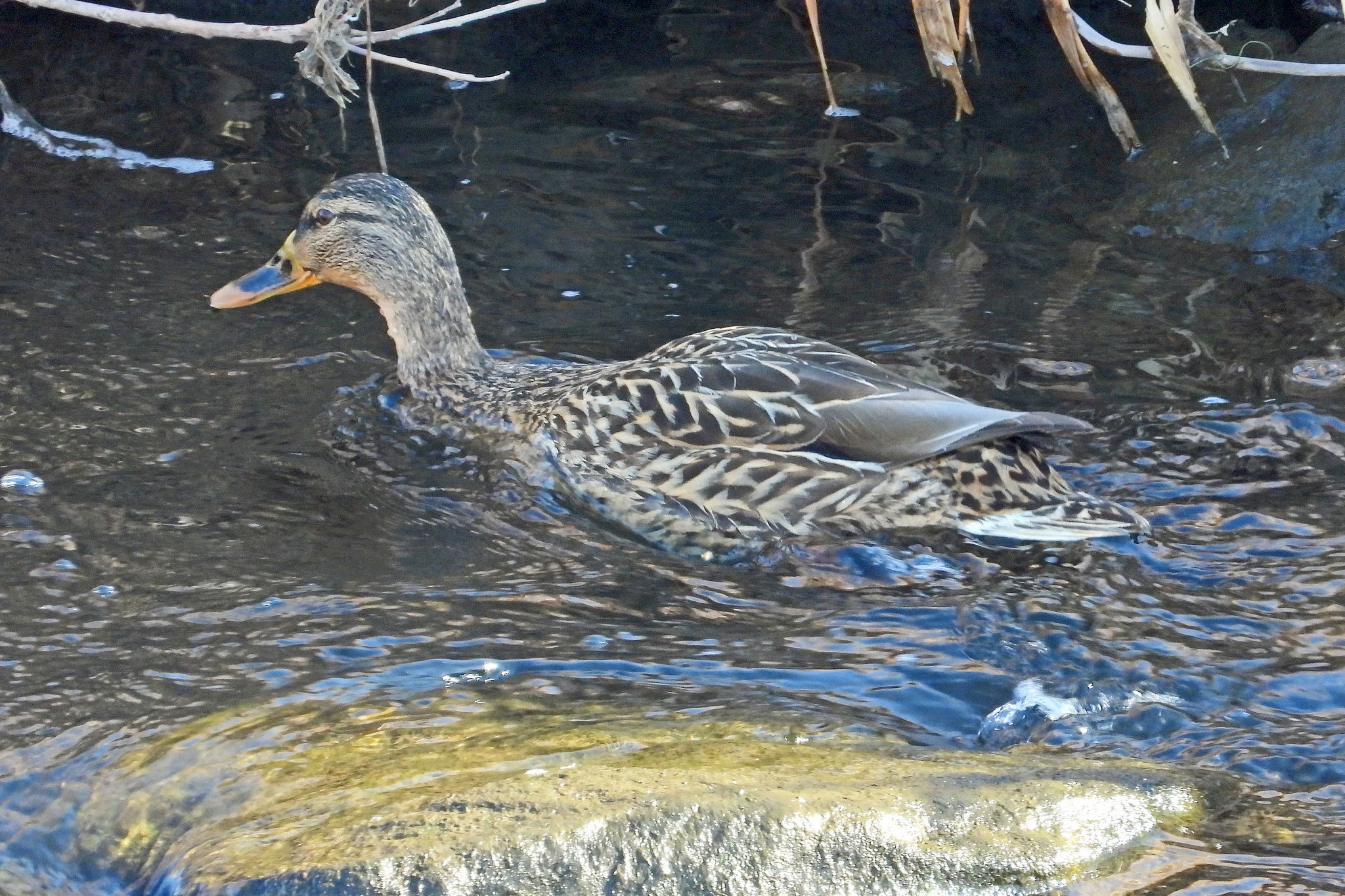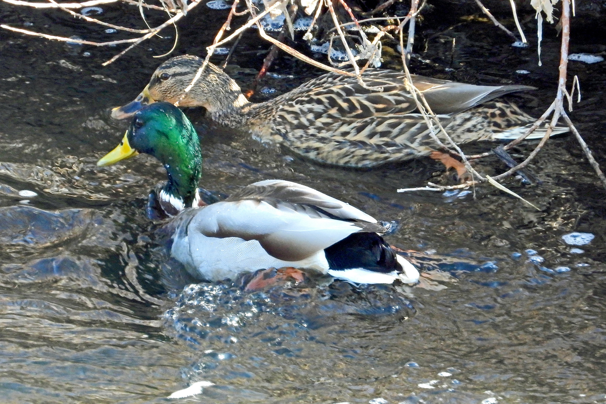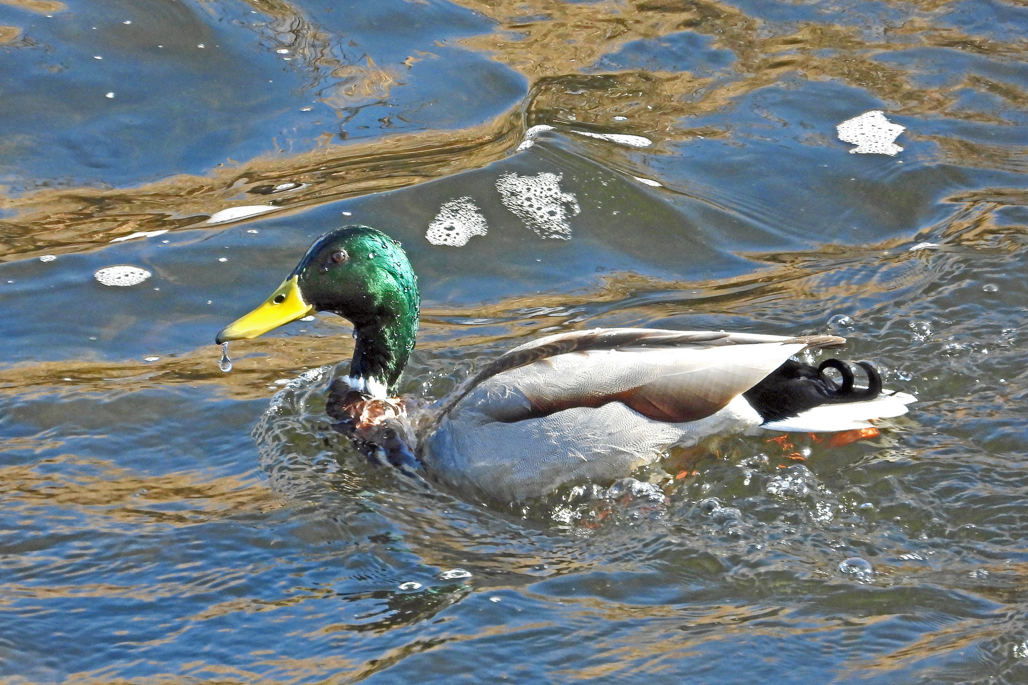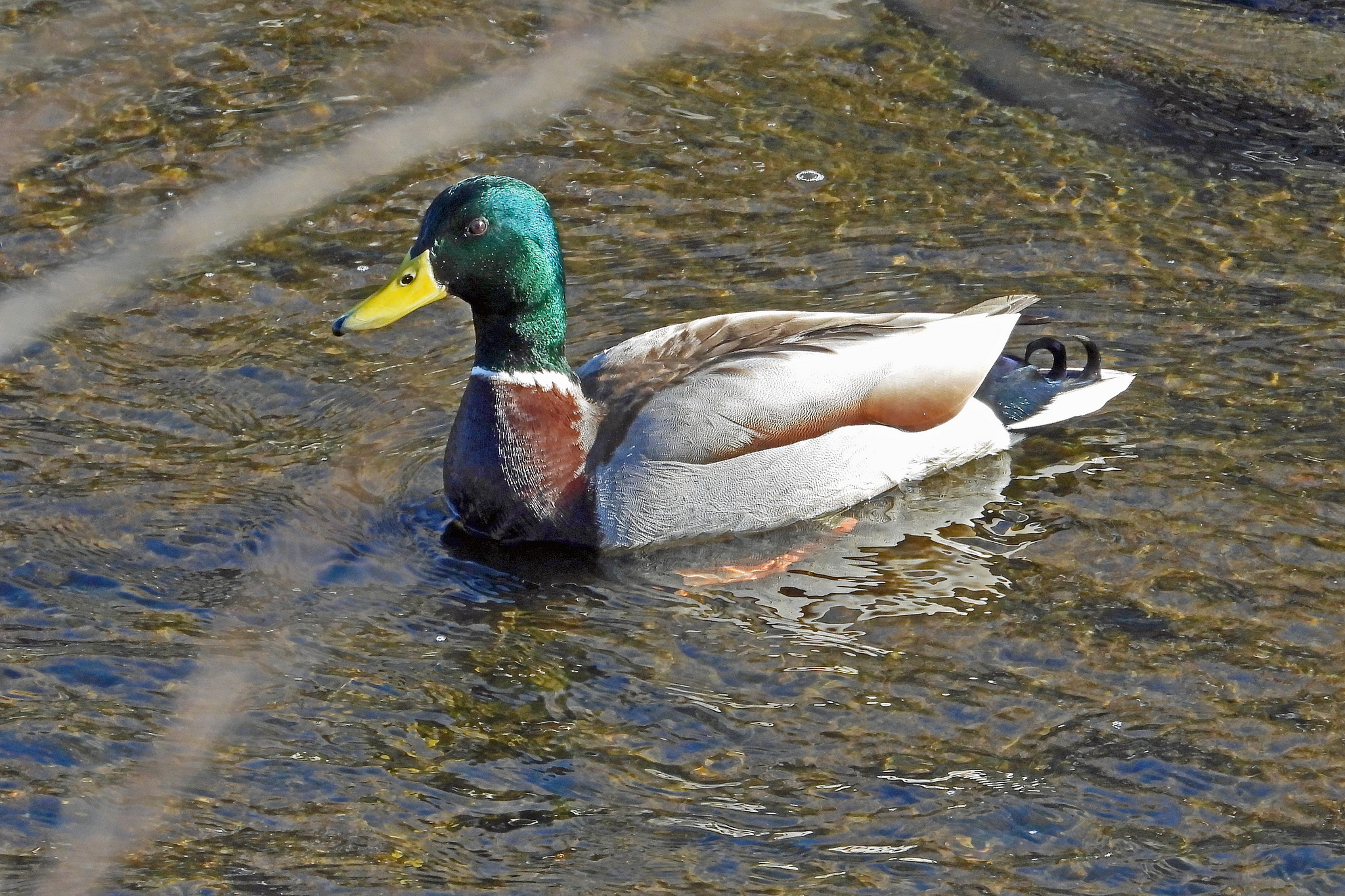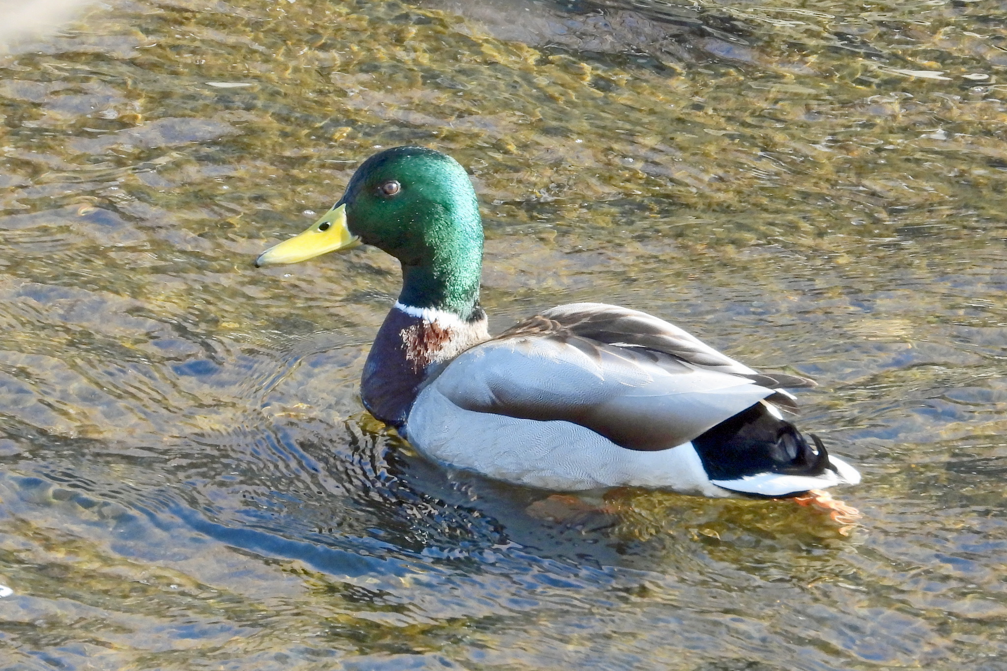川を覗くと、あらまっ、オスの「マガモ」が居るじゃないですか。