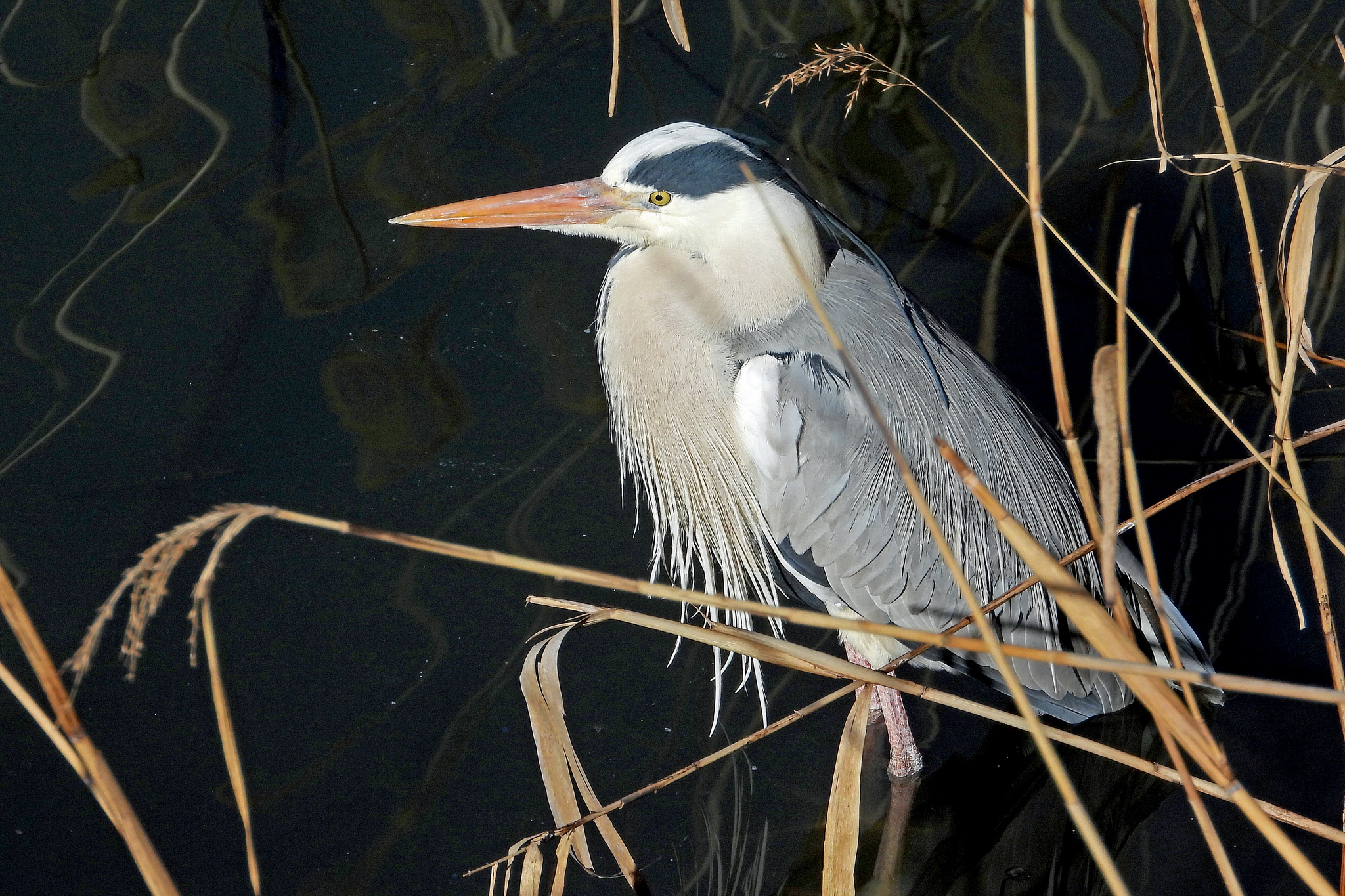 氷が張っていないところで「アオサギ」がじっとしてました。