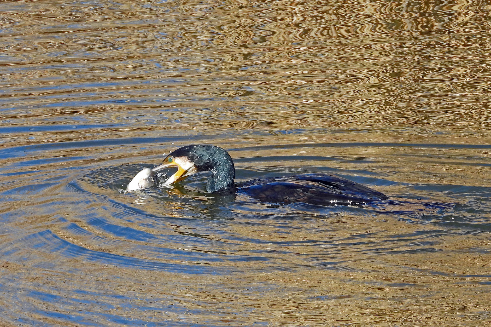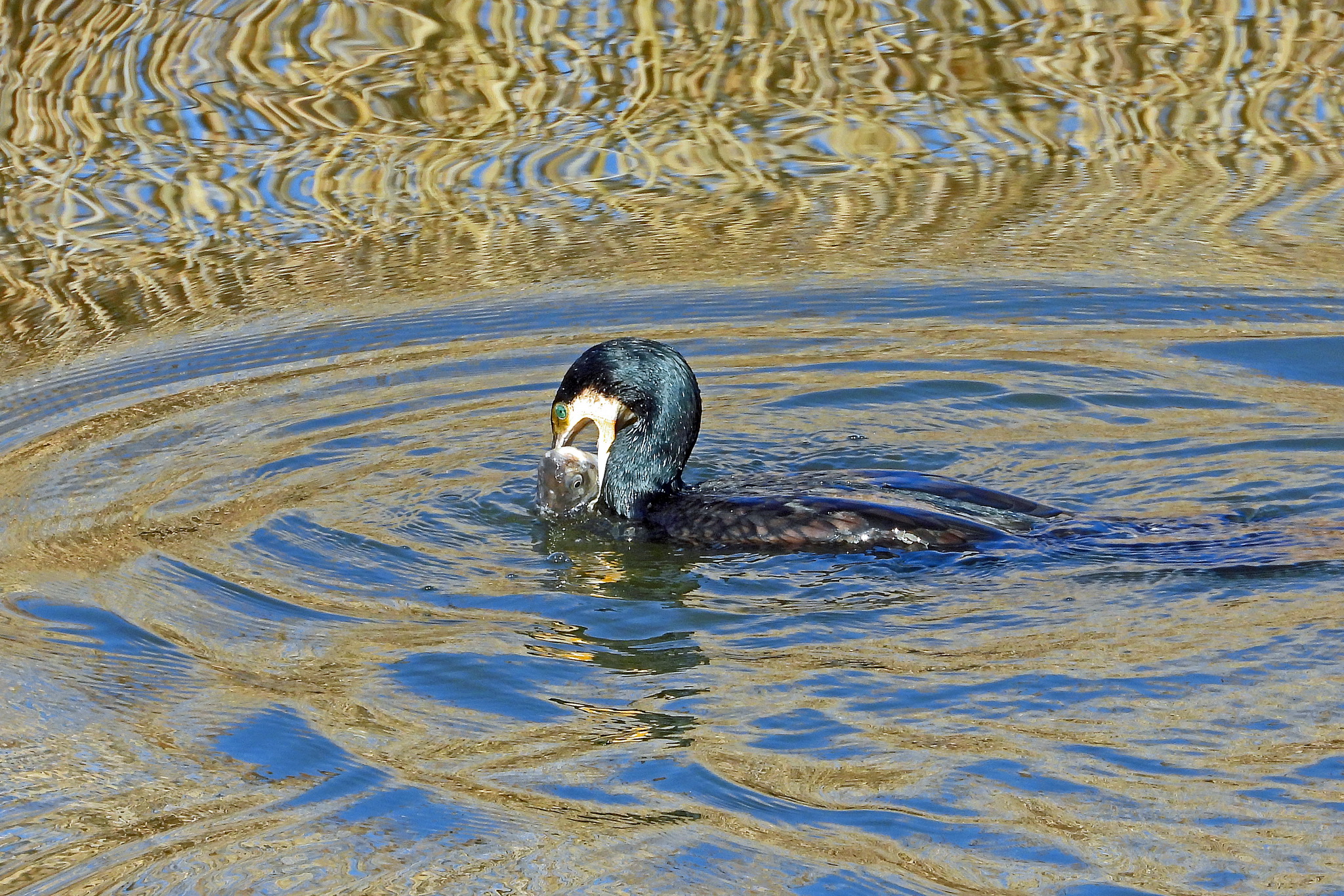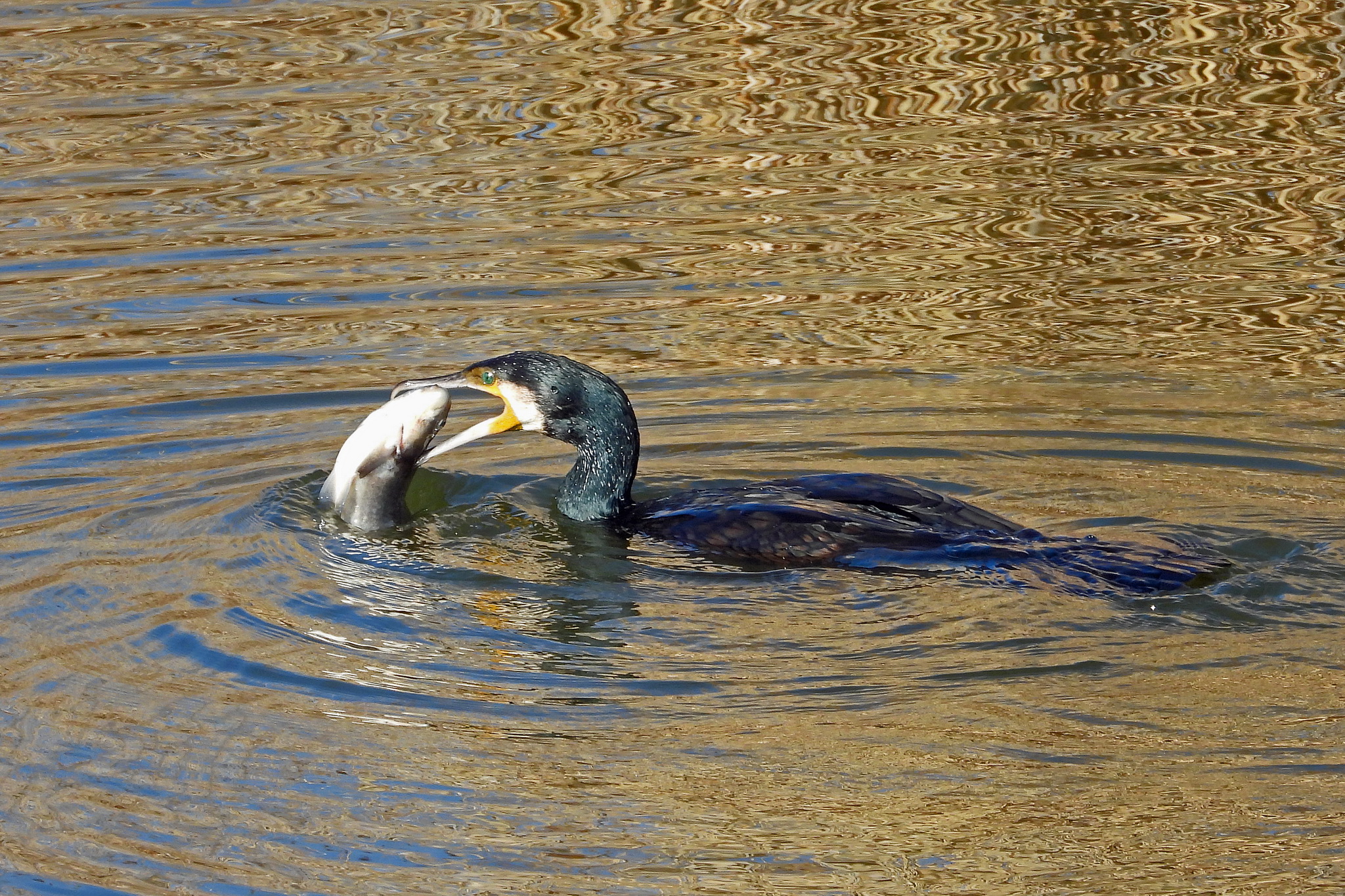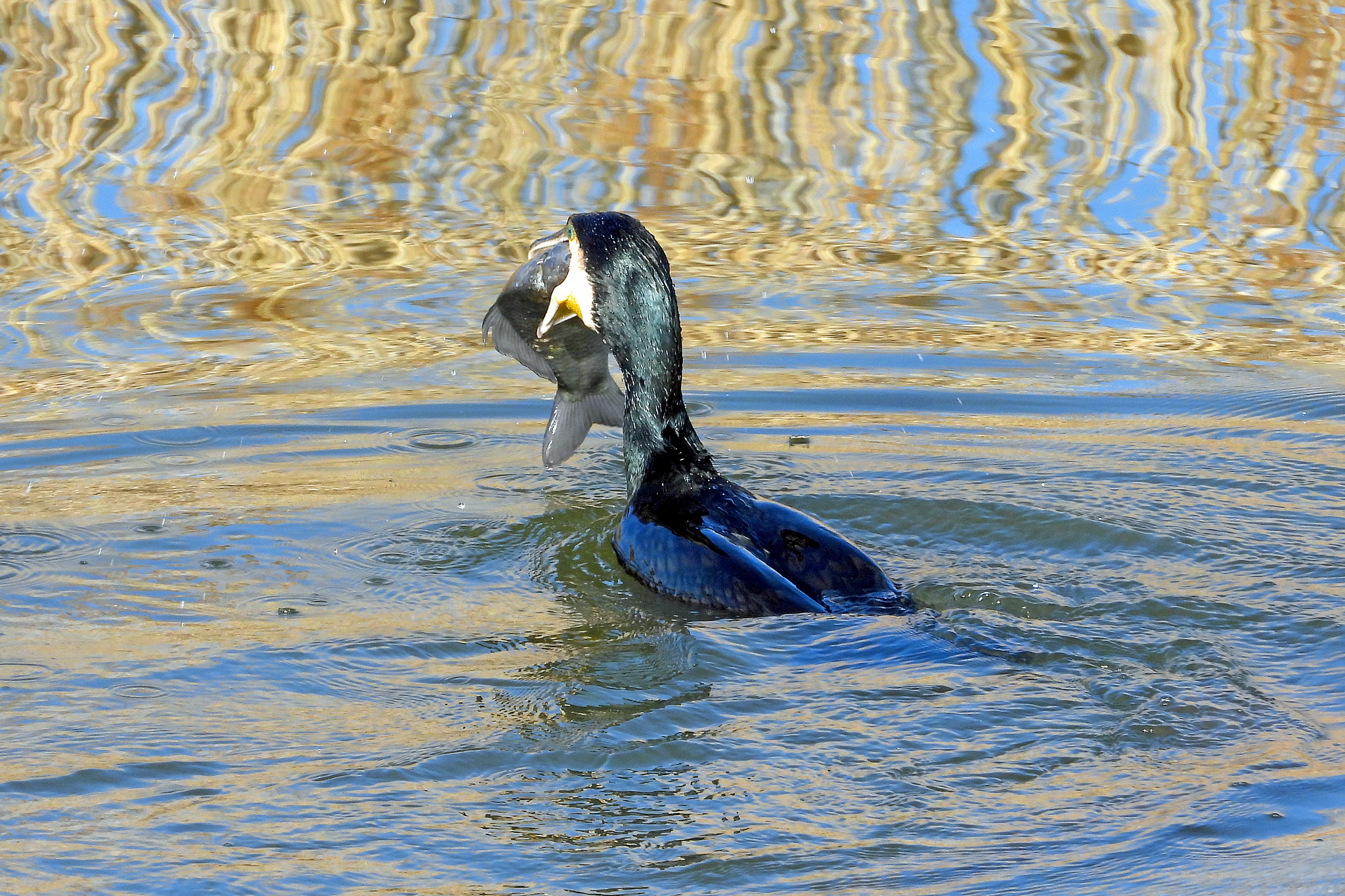 あっ、「カワウ」が「フナ」らしき魚をゲットしました。