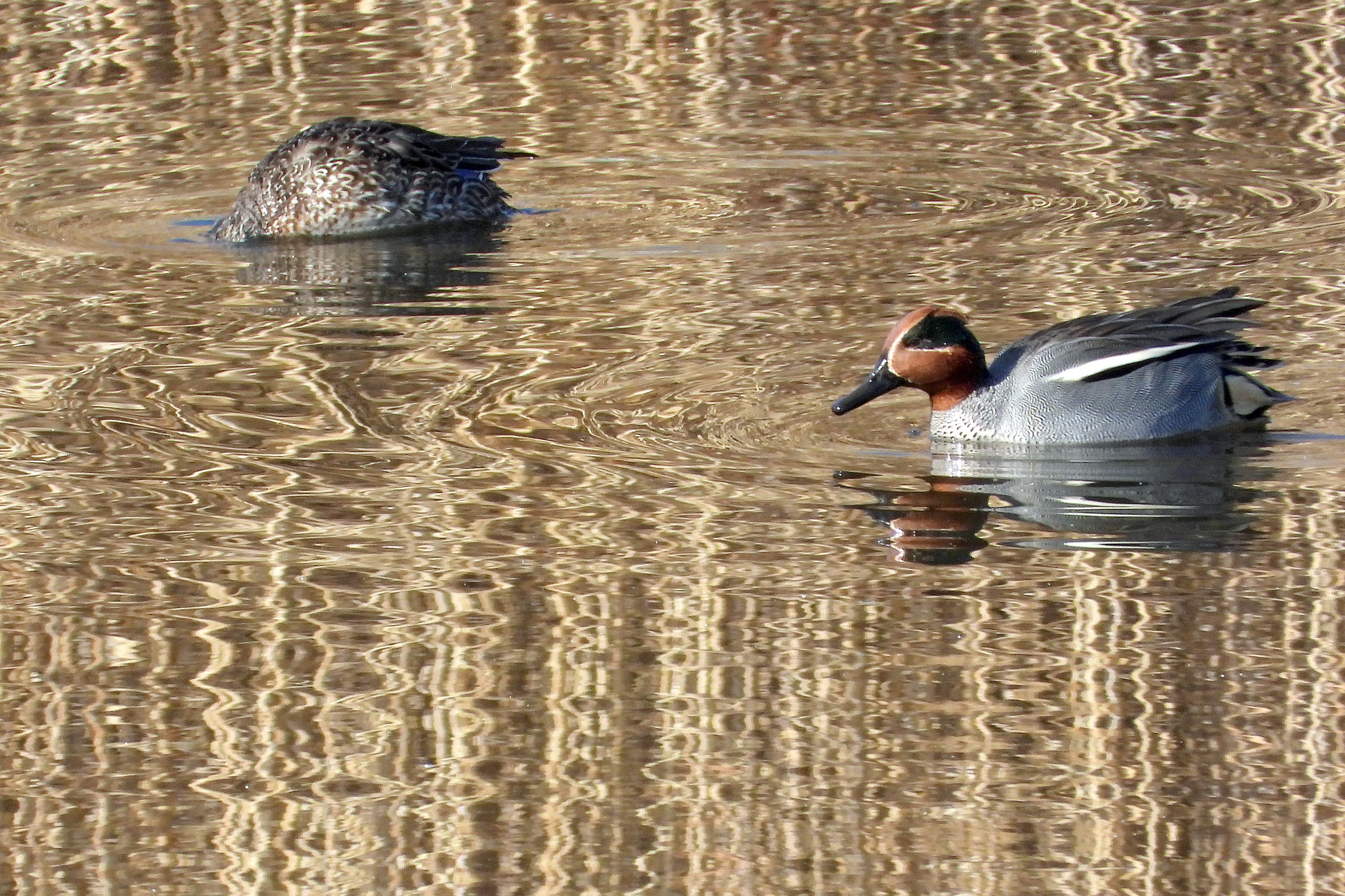 カップルらしき「コガモ」がファインダー内に飛び込んできました。