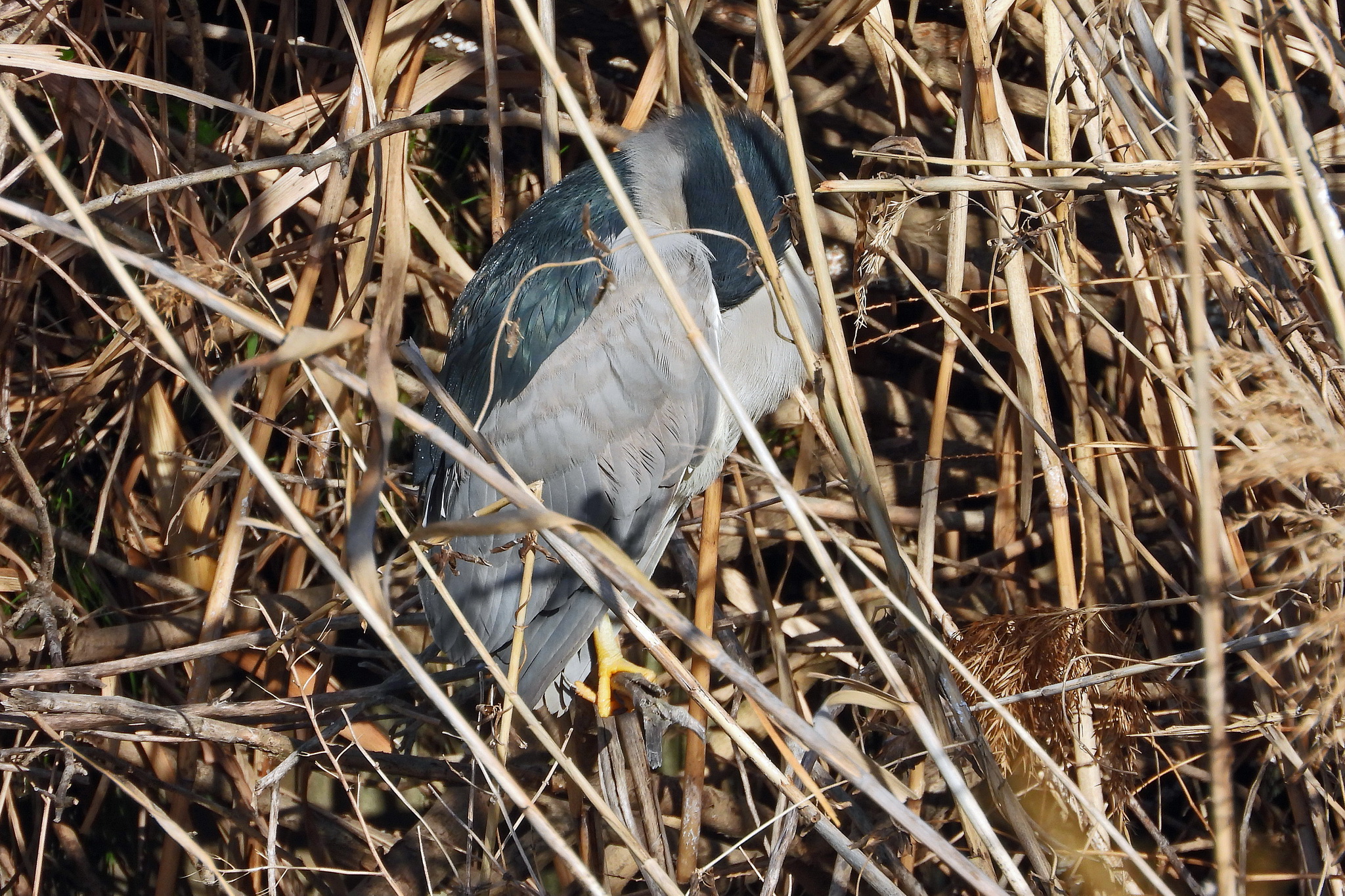 先ほどの「ゴイサギ」を見ると、起きて目を見開いてました。