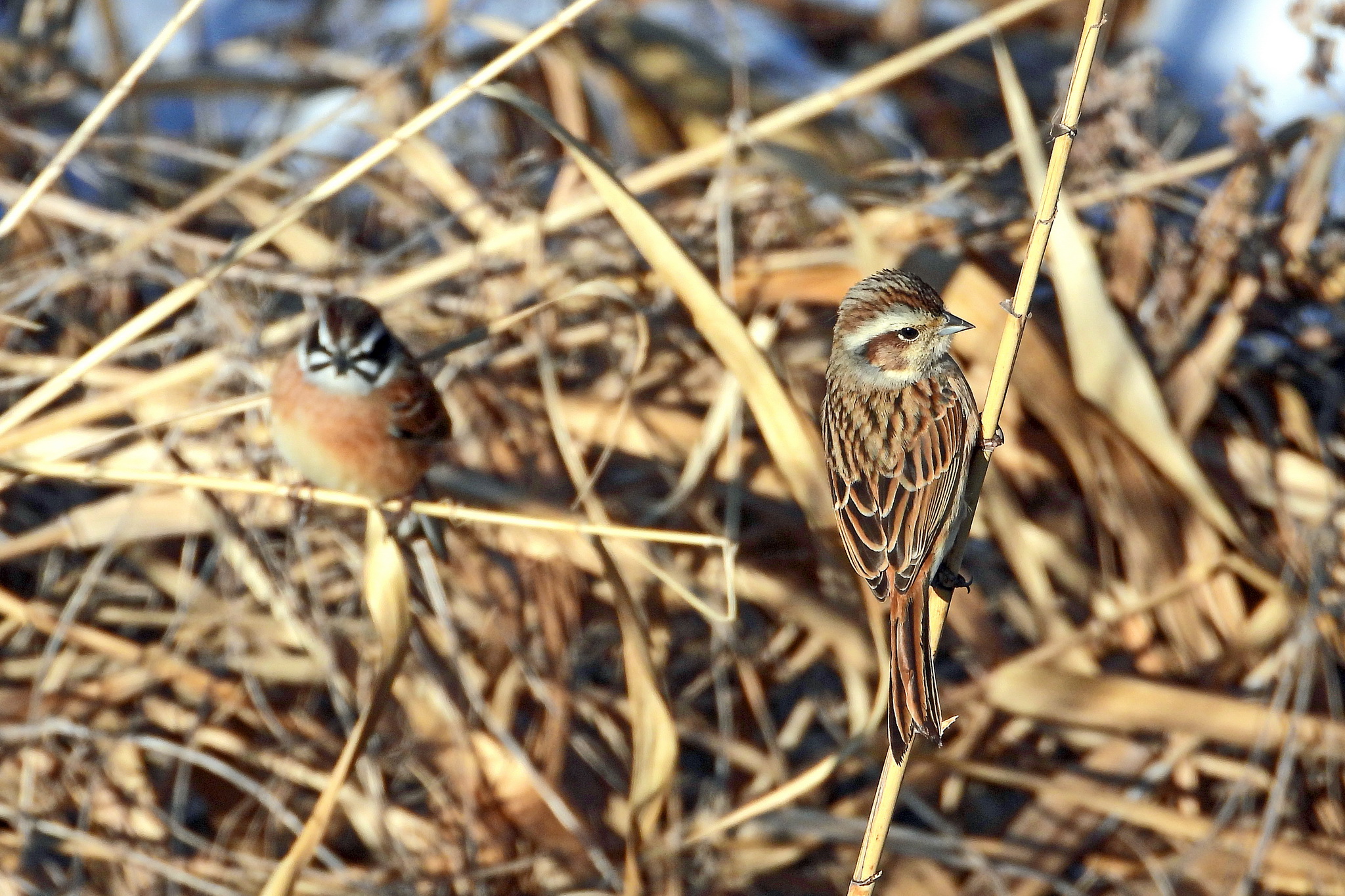 おっ、鳥が三羽飛んで来て葦原に入りました。