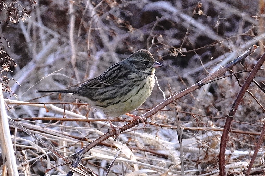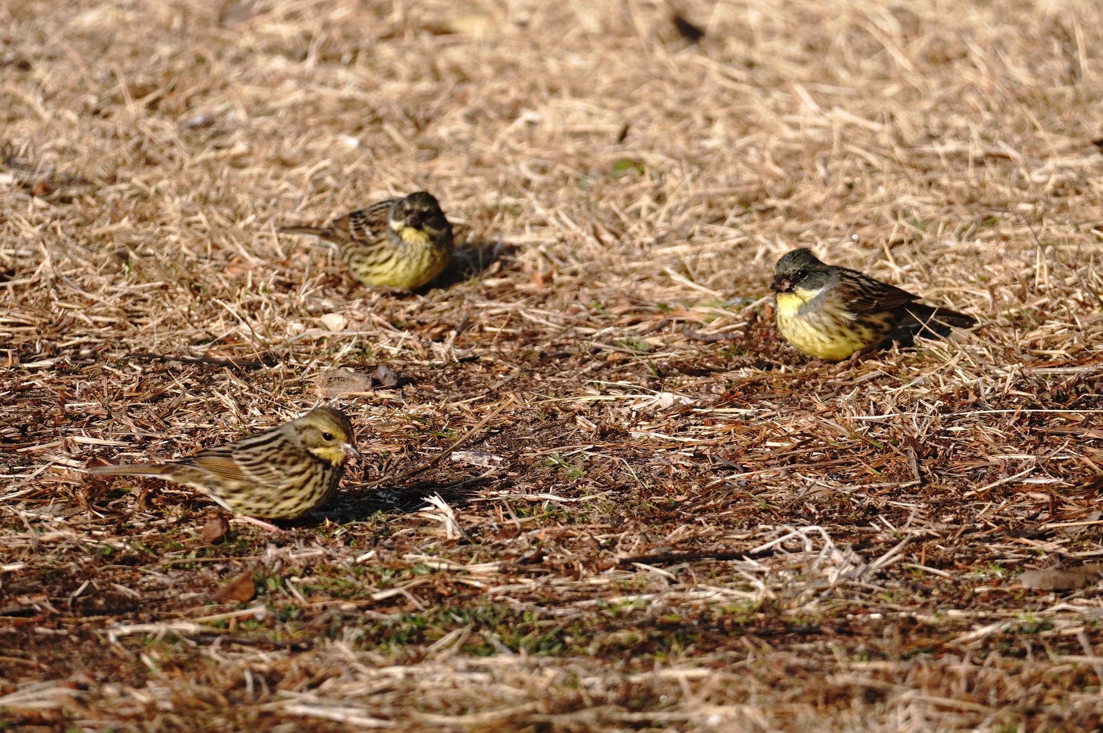 朝は日差しがあり、アオジが道に出て採餌