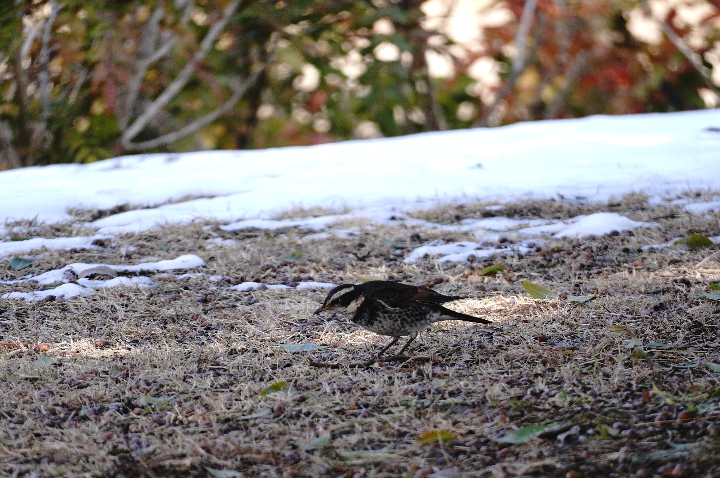 ツグミ 近くに残雪