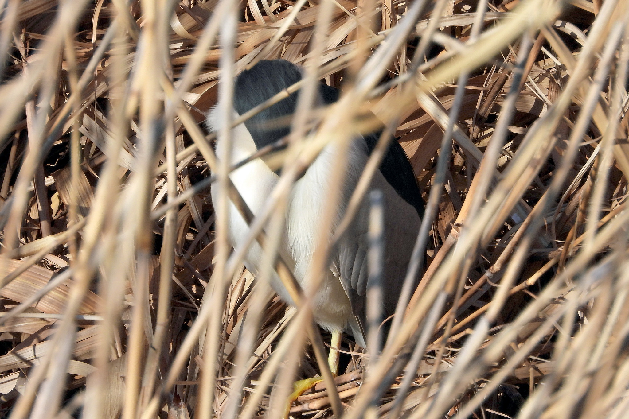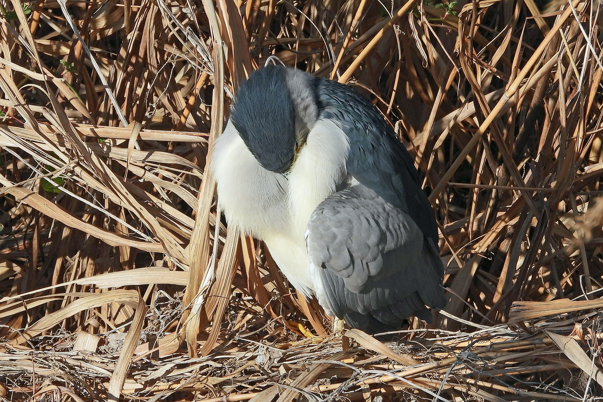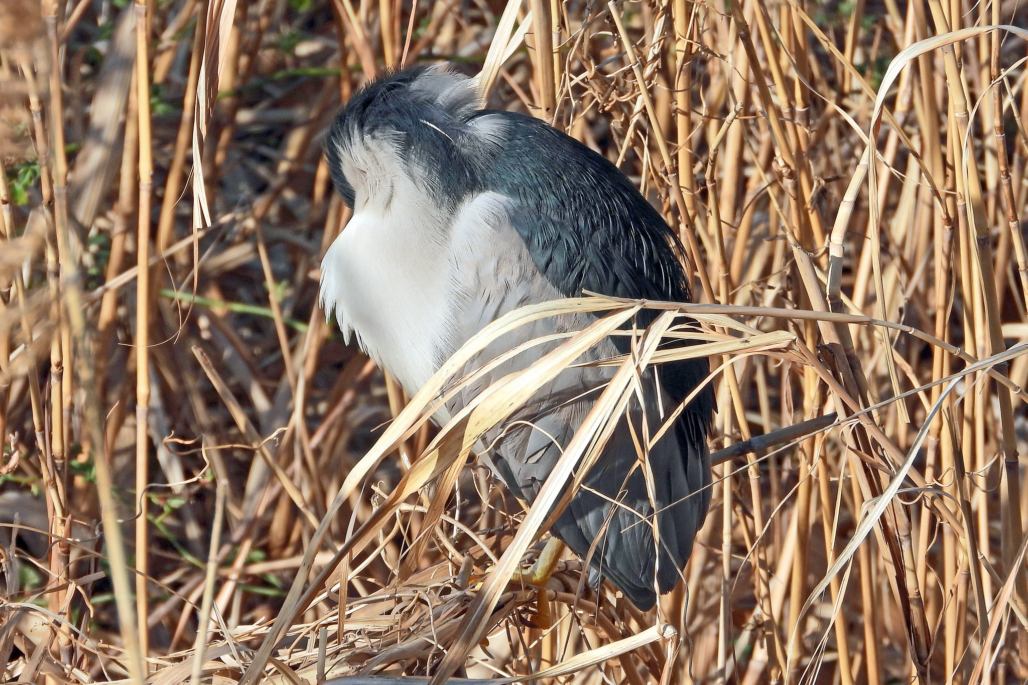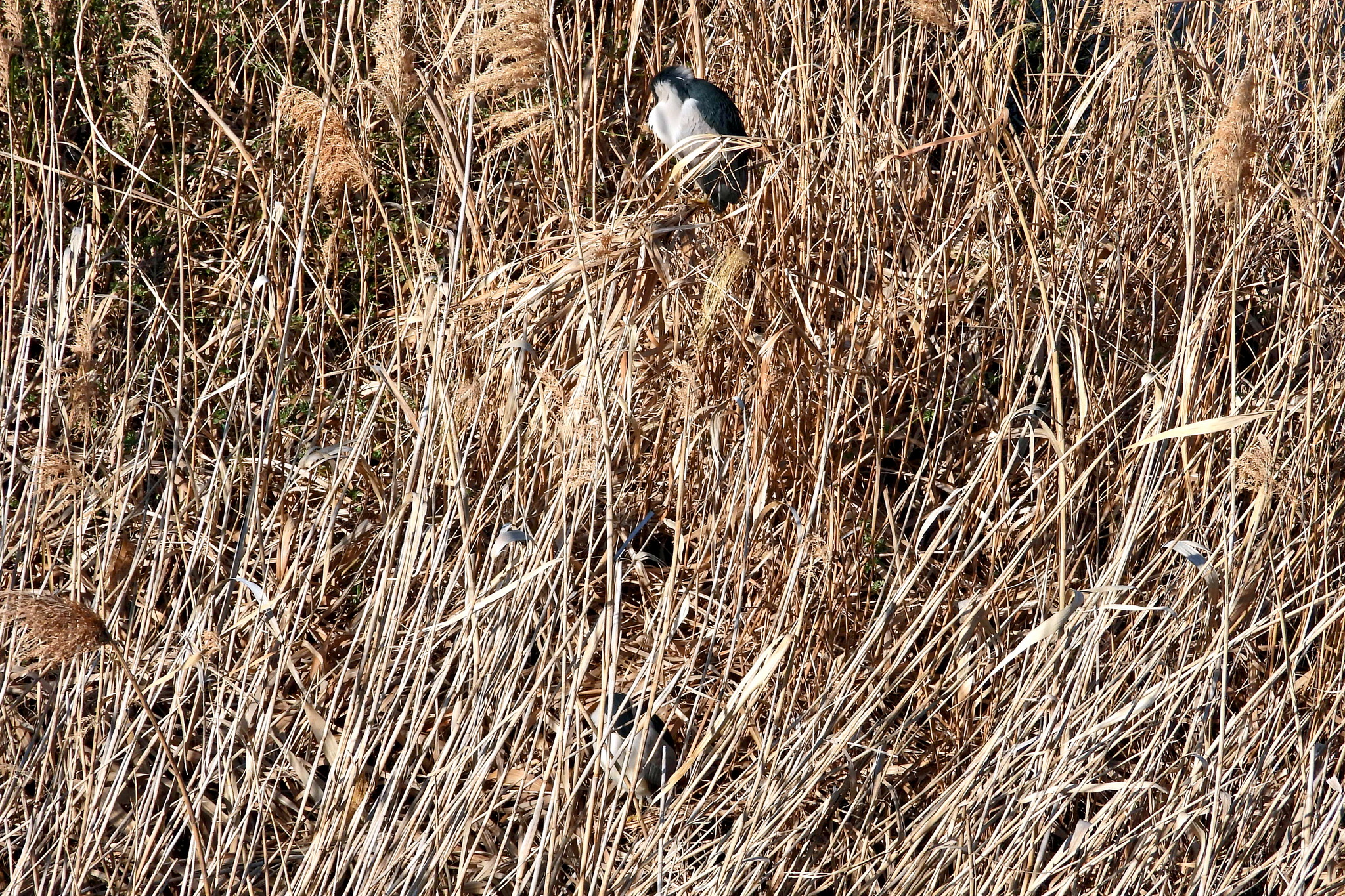 葦原の中と、その上の「ゴイサギ」。