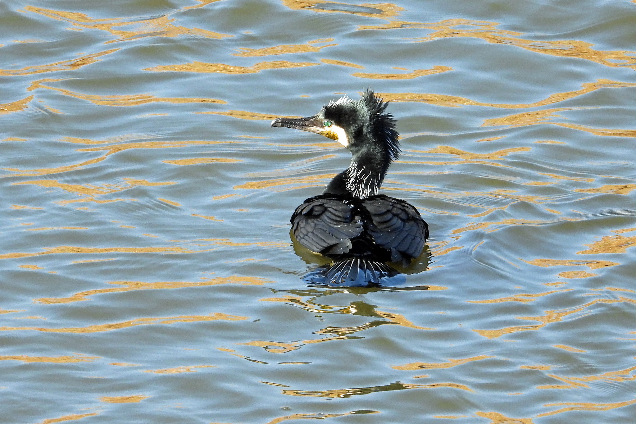 おっ、「カワウ」が飛んで来て着水しました。