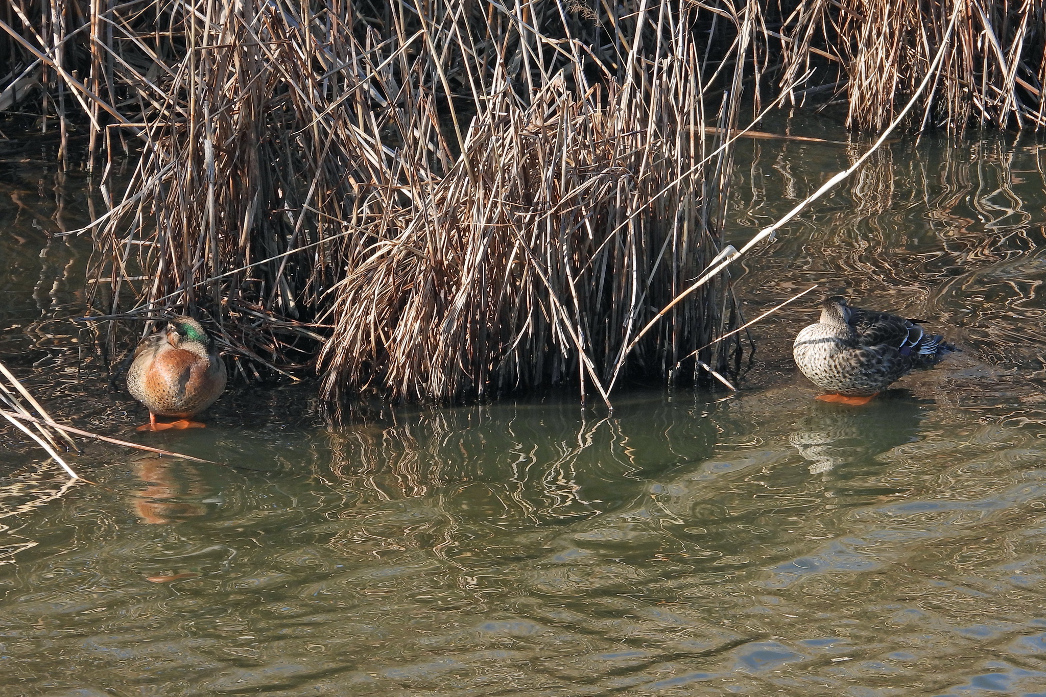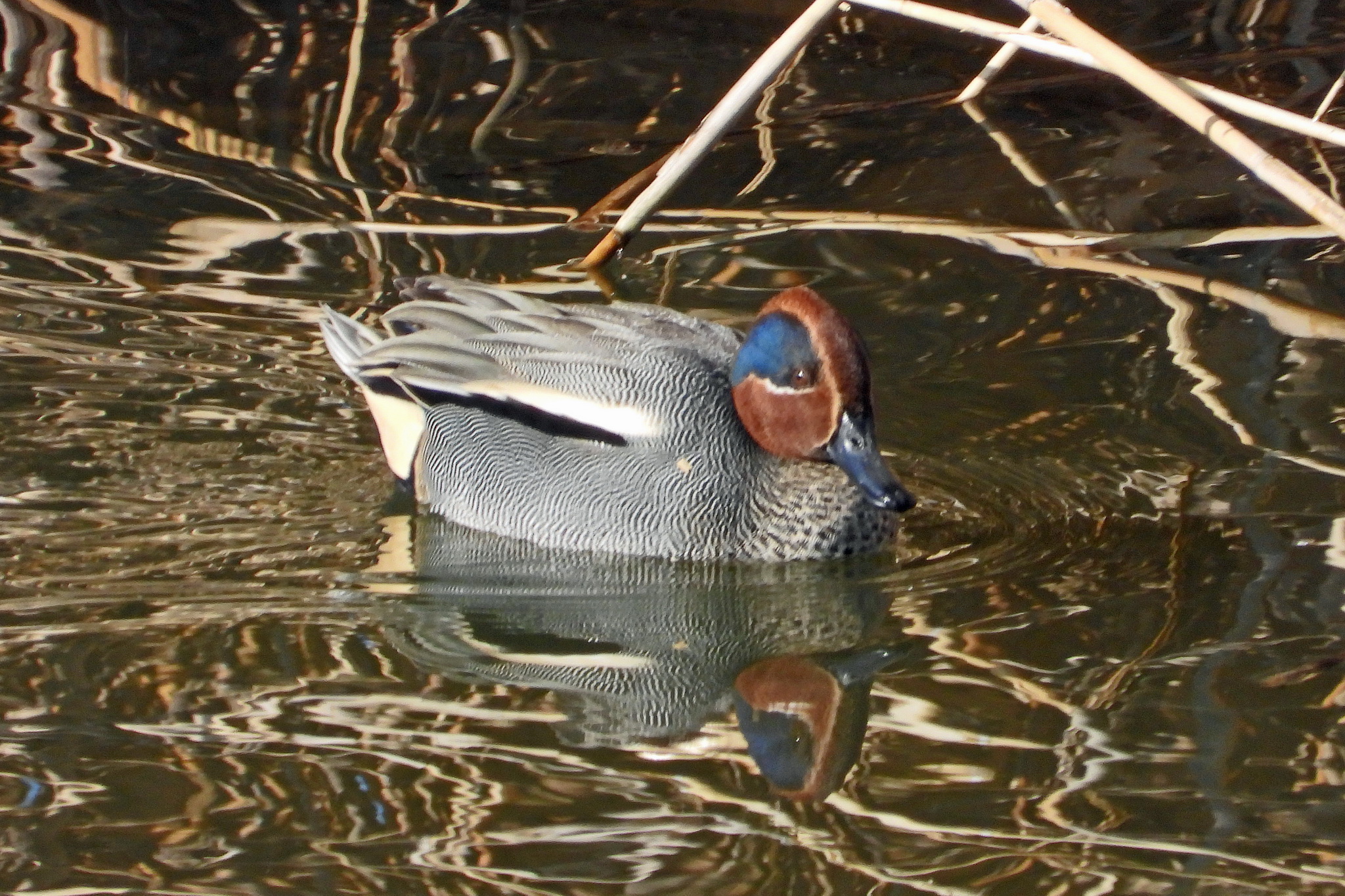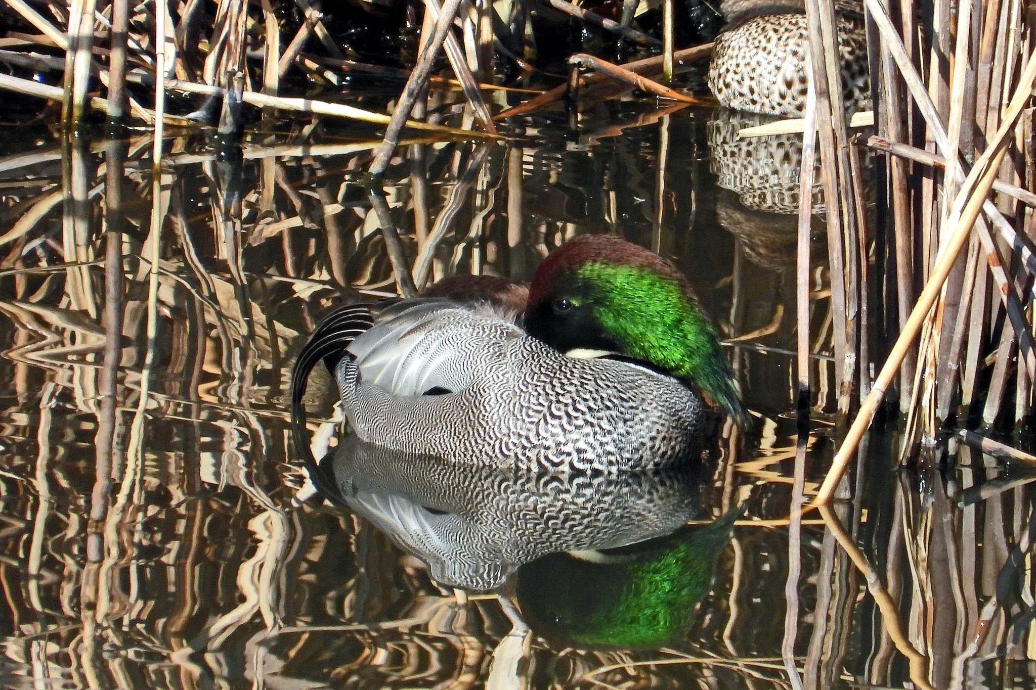「ヒドリガモ」「ハシビロガモ」のメス、「コガモ」オスですね。