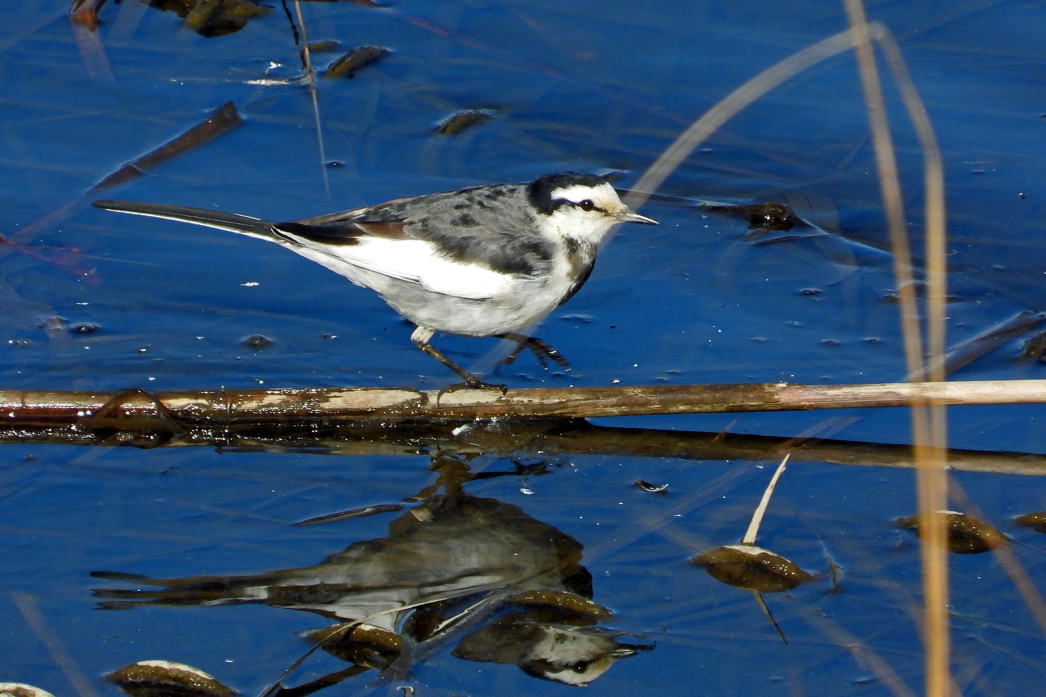 あっ、めずらしく「セグロセキレイ」が浅瀬に飛び込んできました。