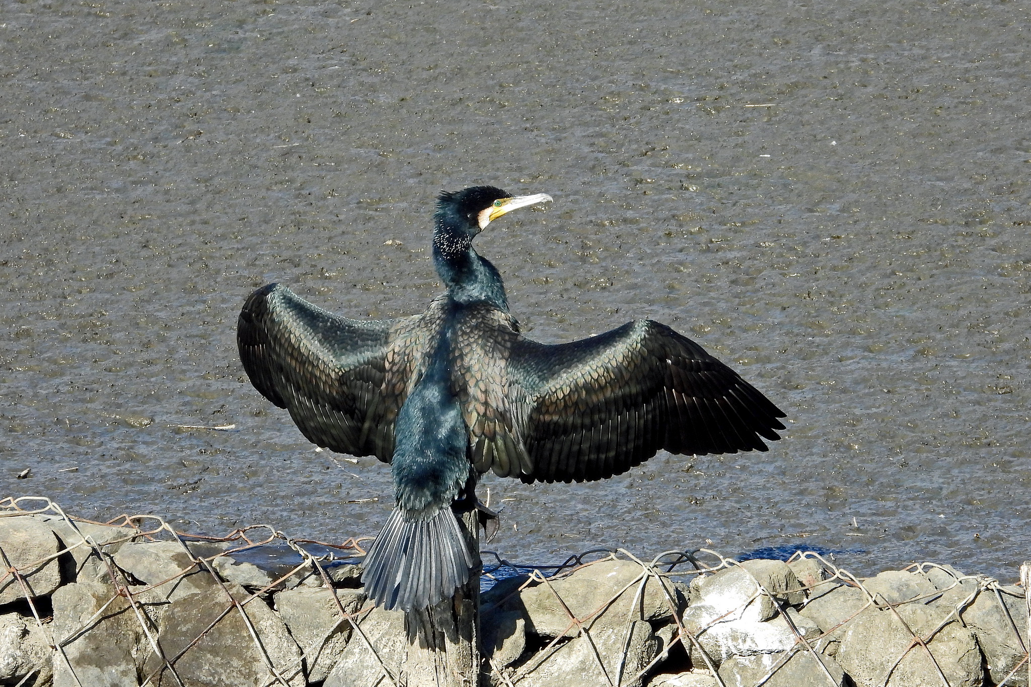 石組みで、「カワウ」が羽干ししてました。