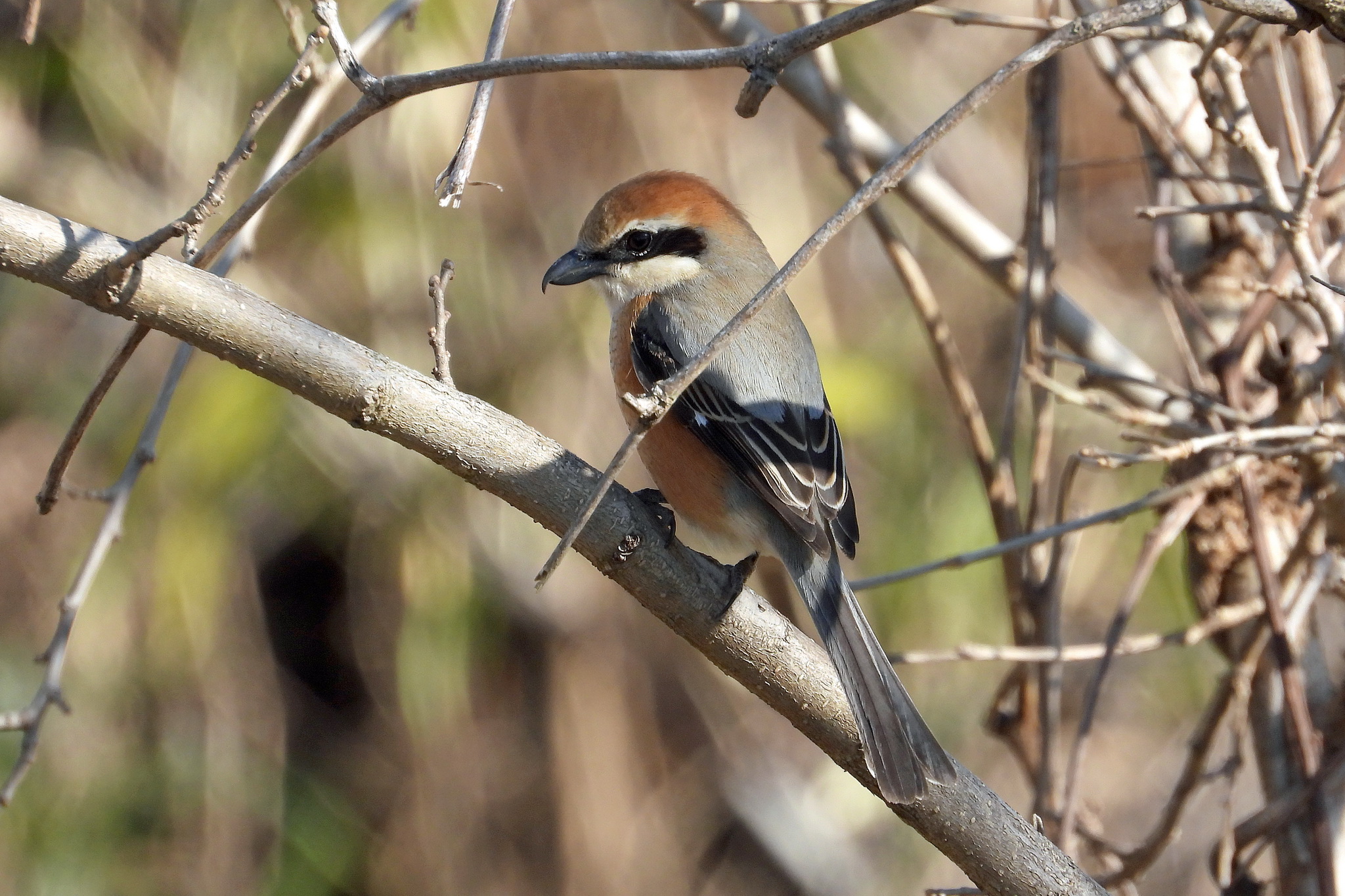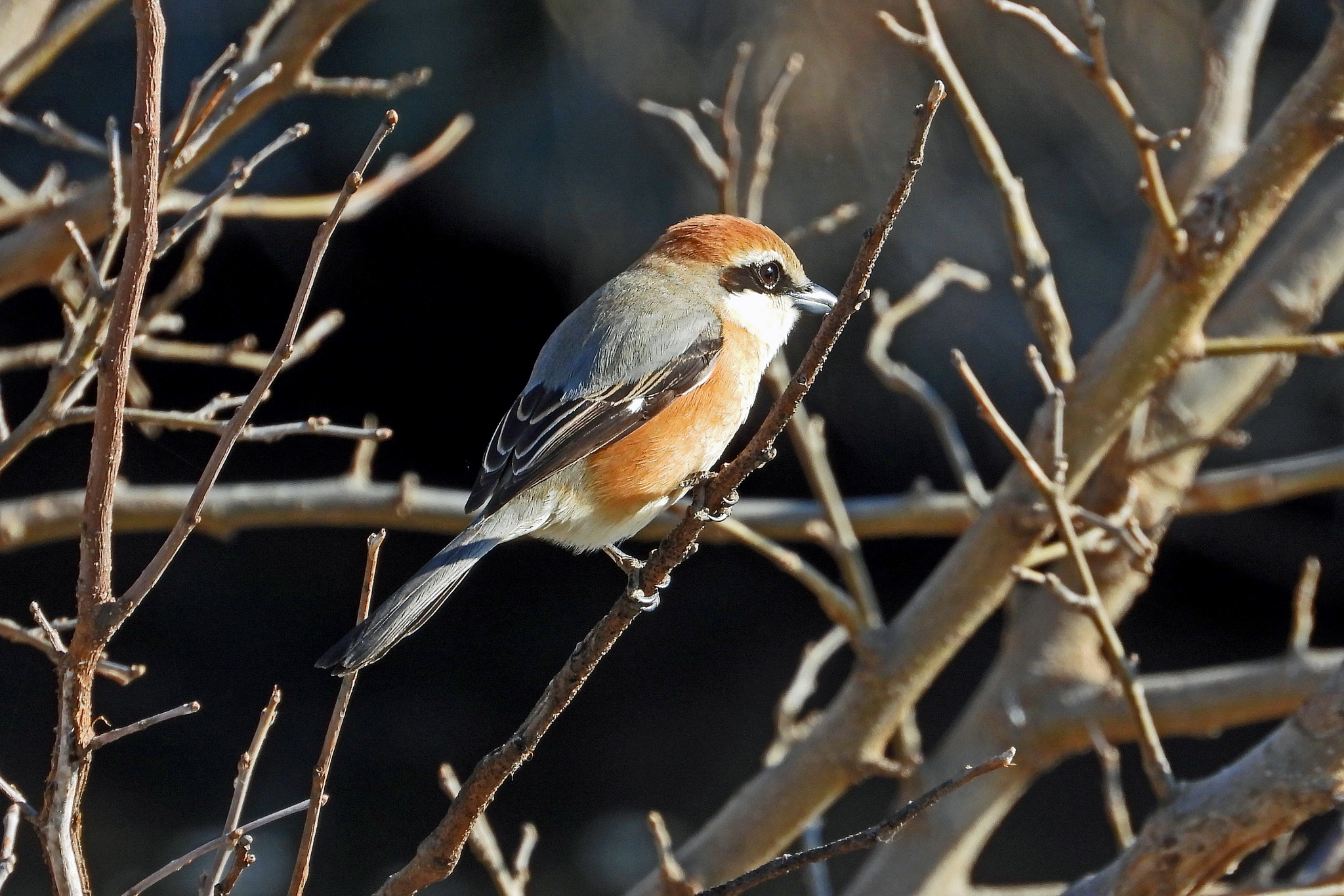 おっ、木に「モズ」が飛び込んできた。